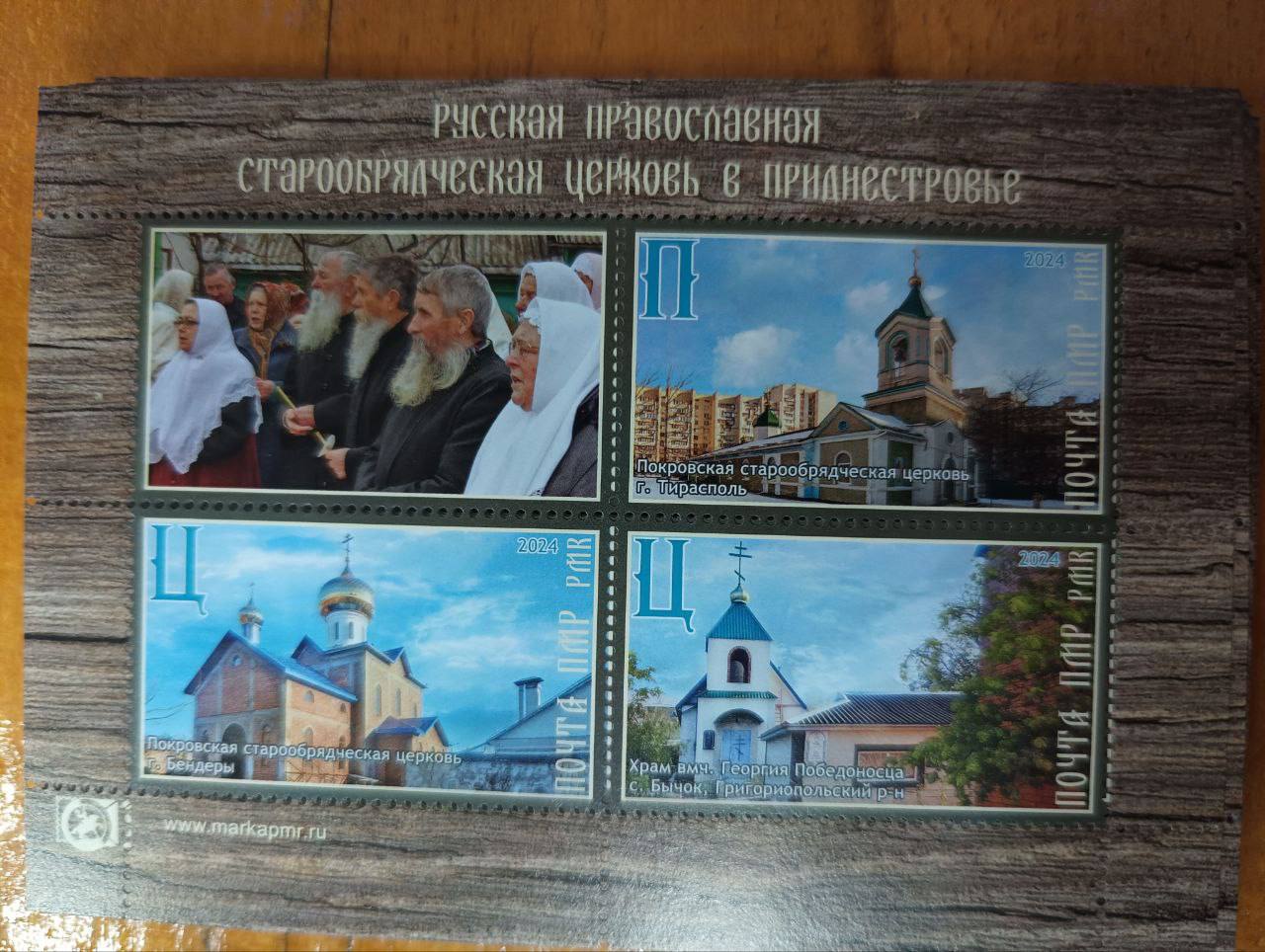 Блок включает марки с изображением старообрядческих церквей во имя Покрова Пресвятой Богородицы в Бендерах и Тирасполе, а также храма Великомученика Георгия Победоносца в селе Бычок Григориопольского района.