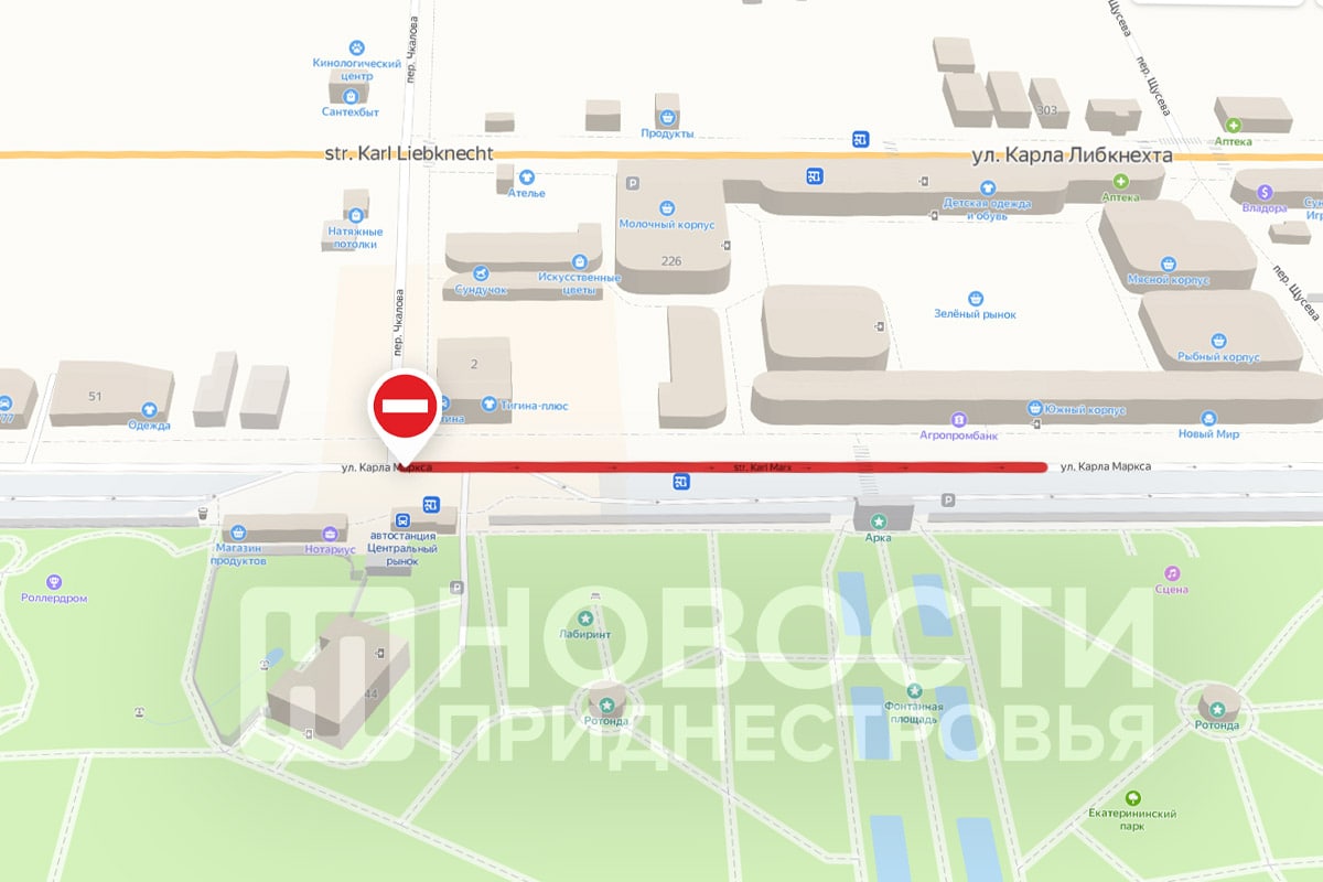 Тирасполь, 9 декабря. /Новости Приднестровья/. С 12 по 21 декабря в Тирасполе полностью перекроют движение автотранспорта по улице Карла Маркса от переулка Чкалова до входа на Зелёный рынок. Там будут проводиться земляные работы по аварийному ремонту канализационного коллектора, сообщили в пресс-службе столичной госадминистрации.