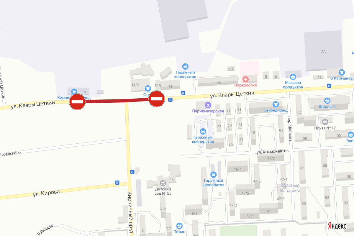 Тирасполь, 19 апреля. /Новости Приднестровья/. Столичная госадминистрация сообщает о полном ограничении движения автотранспорта по улице Клары Цеткин. Речь идёт об участке от Кирпичного завода до жилого дома № 14а по ул. Клары Цеткин.