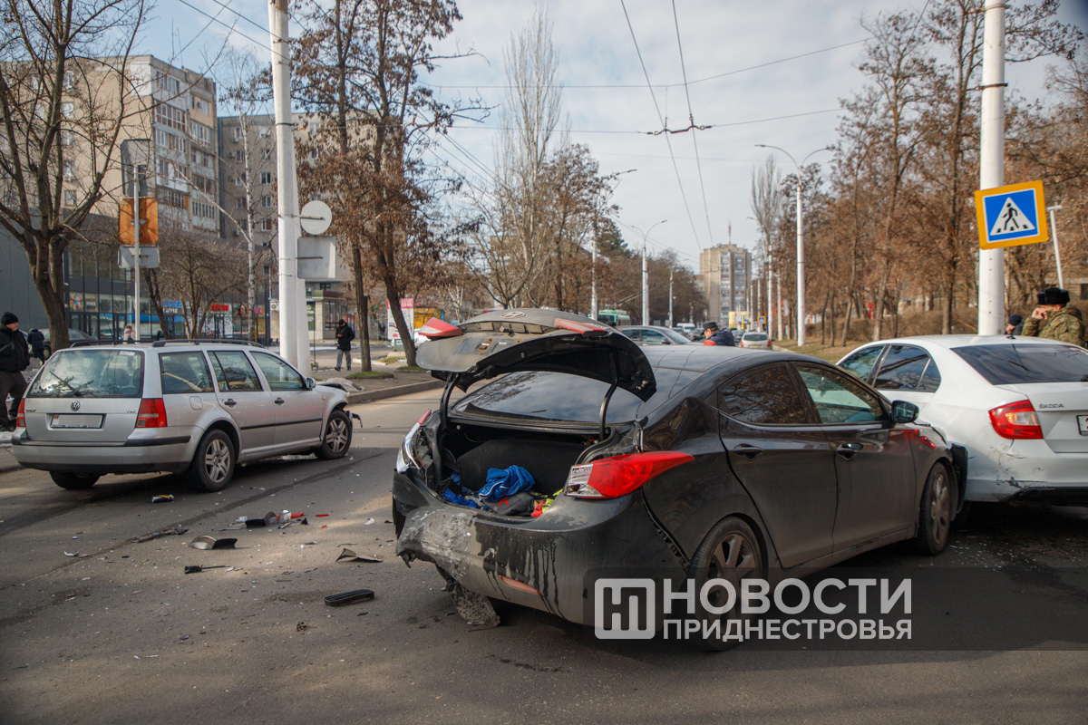 Тирасполь, 18 февраля. /Новости Приднестровья/. Днем 18 февраля на улице Правды в Тирасполе столкнулись четыре автомобиля.