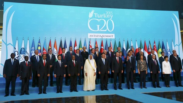 «Группа двадцати» (G20) — ведущий форум для обсуждения вопросов глобального экономического и финансового сотрудничества. G20 объединяет крупнейшие развитые и развивающиеся экономики мира, на долю которых приходится около 85% мирового ВВП. В 2013 году председательство в G20 осуществляла Россия, в 2014 году ее сменила Австралия, в 2015 году эта функция перешла к Турции.