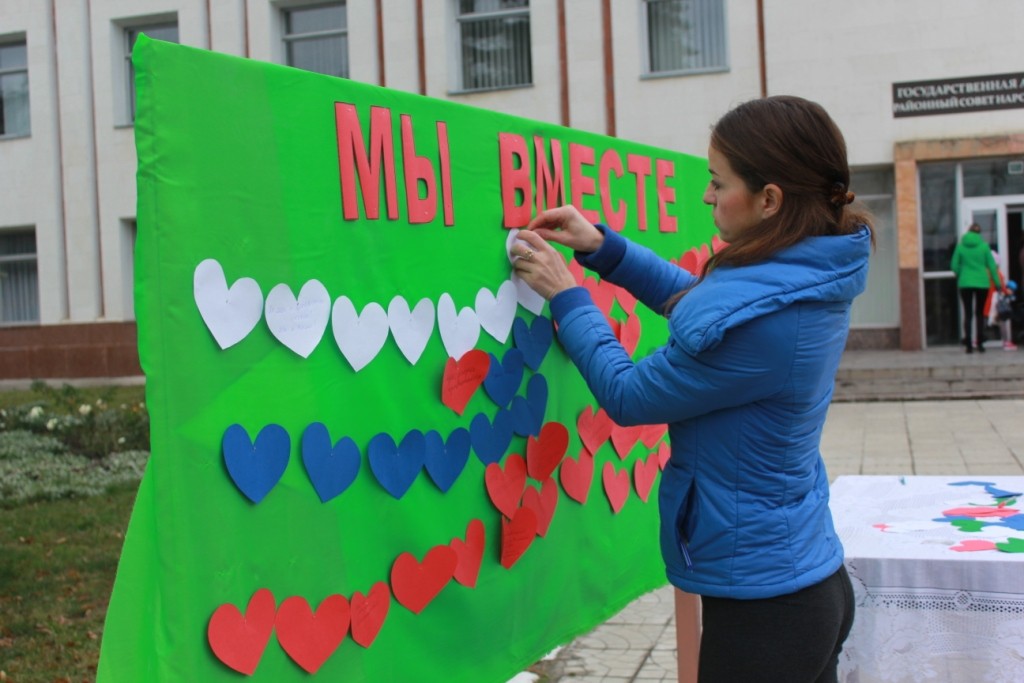 Каменка, 4 ноября. /Новости Приднестровья/. В День народного единства в Каменке прошла акция «Мы вместе!». Местые жители оставили свои пожелания родному Приднестровью и дружественой России на листах в форме сердца и прикрепили их к специальному стенду.