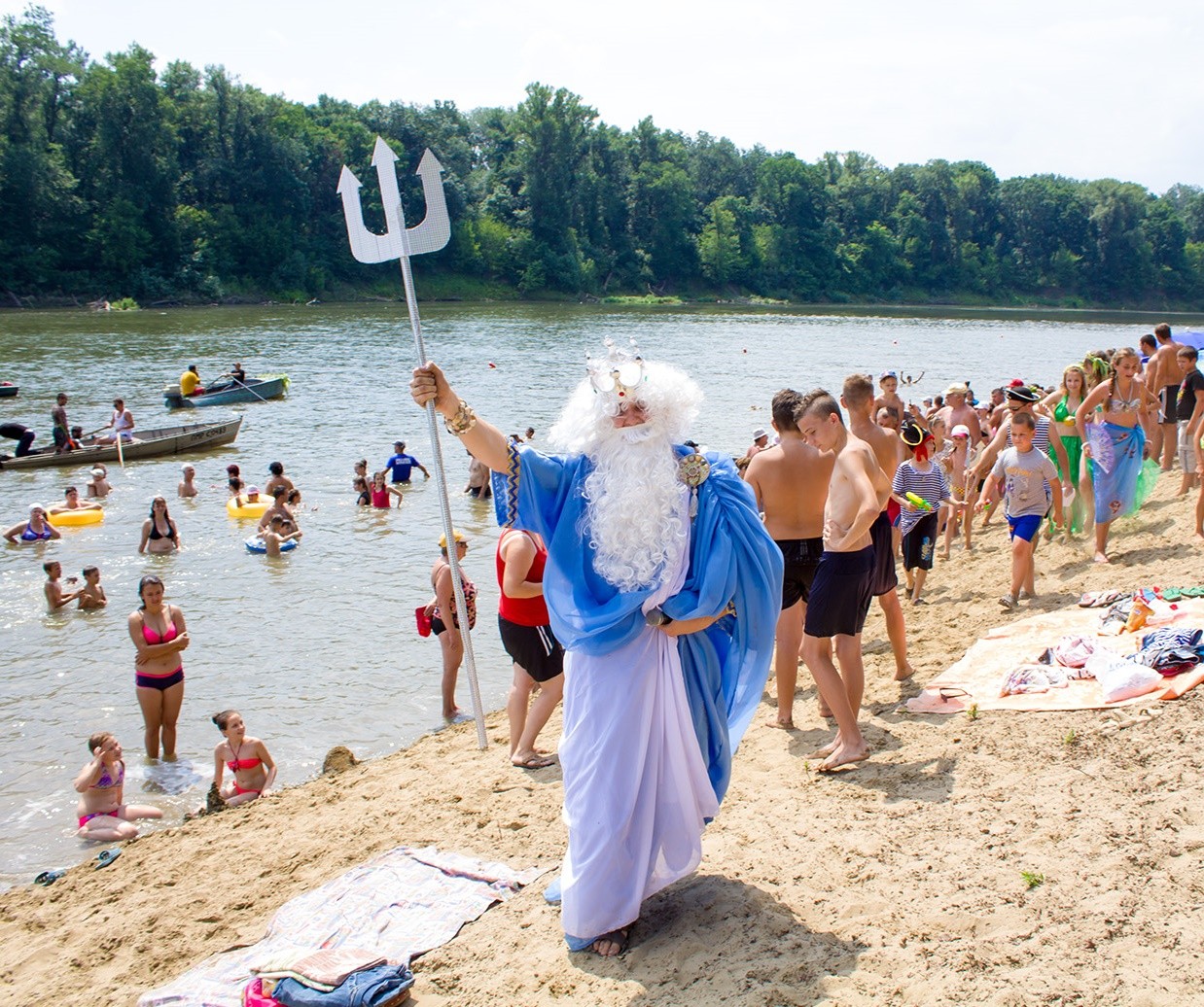 Появление Нептуна было очень эффектным. На двух байдарках морской царь и его свита рассекали волны Днестра. Затем главный герой праздника развлекал детей играми и песнями. Русалки тем временем поливали всех собравшихся водой. Только так можно было охладиться в этот жаркий летний день.
