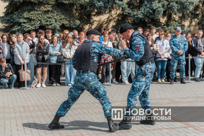 Мероприятие открыли показательные выступления студентов первого курса. Они продемонстрировали упражнения из базового комплекса рукопашного боя, а также отточенные действия в случае захвата заложников.