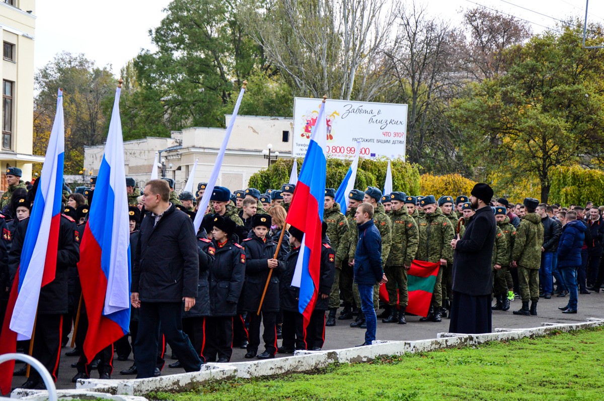 Курсанты Военного института, воспитанники Суворовского училища, ОСТК, школьники и студенты, представители национальных общин и общественных организаций, защитники Приднестровья, ветераны, работники организаций и предприятий... Как и разноцветье медленно проплывающих по улице флагов, они отражали главную идею праздника – единение приднестровского народа.