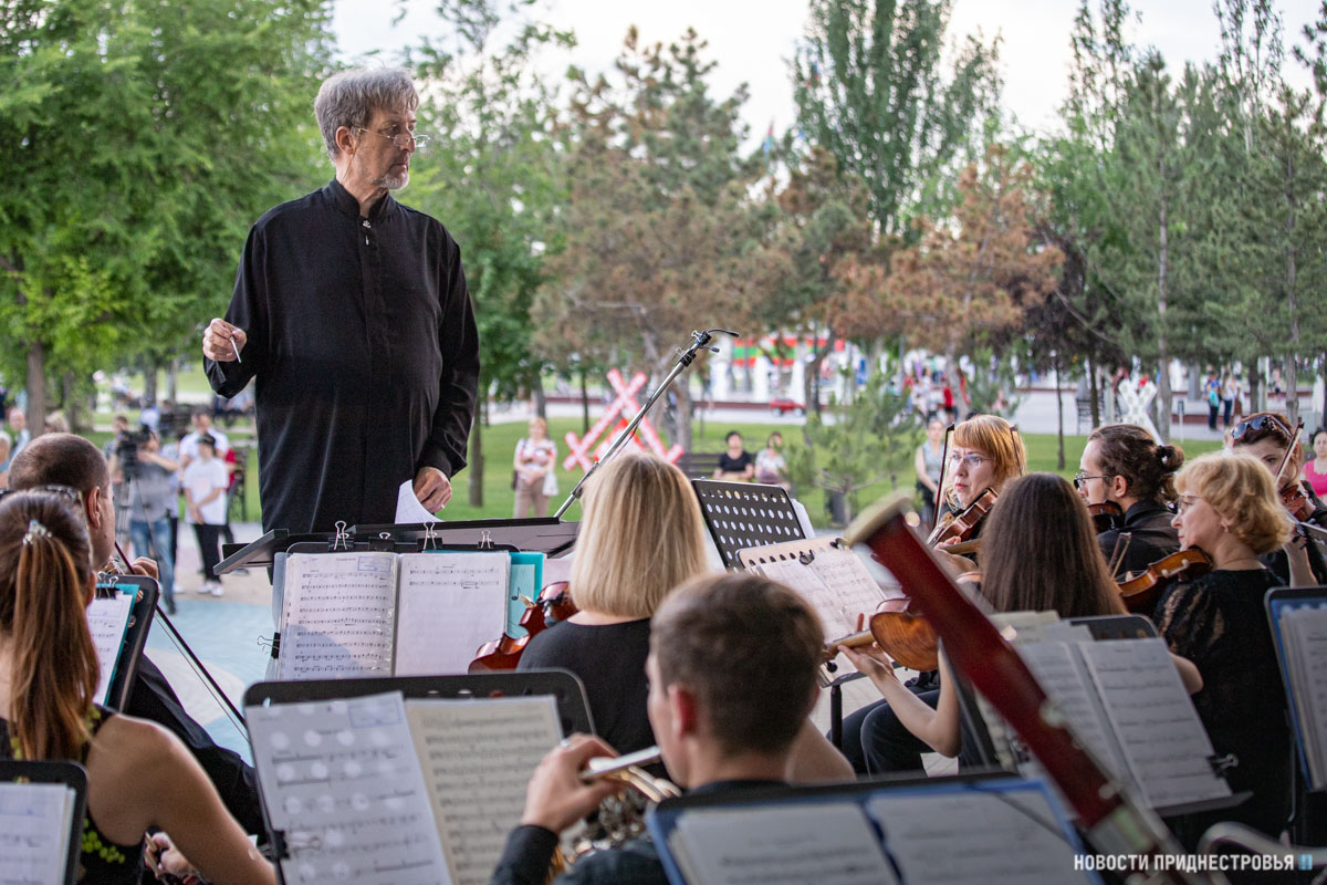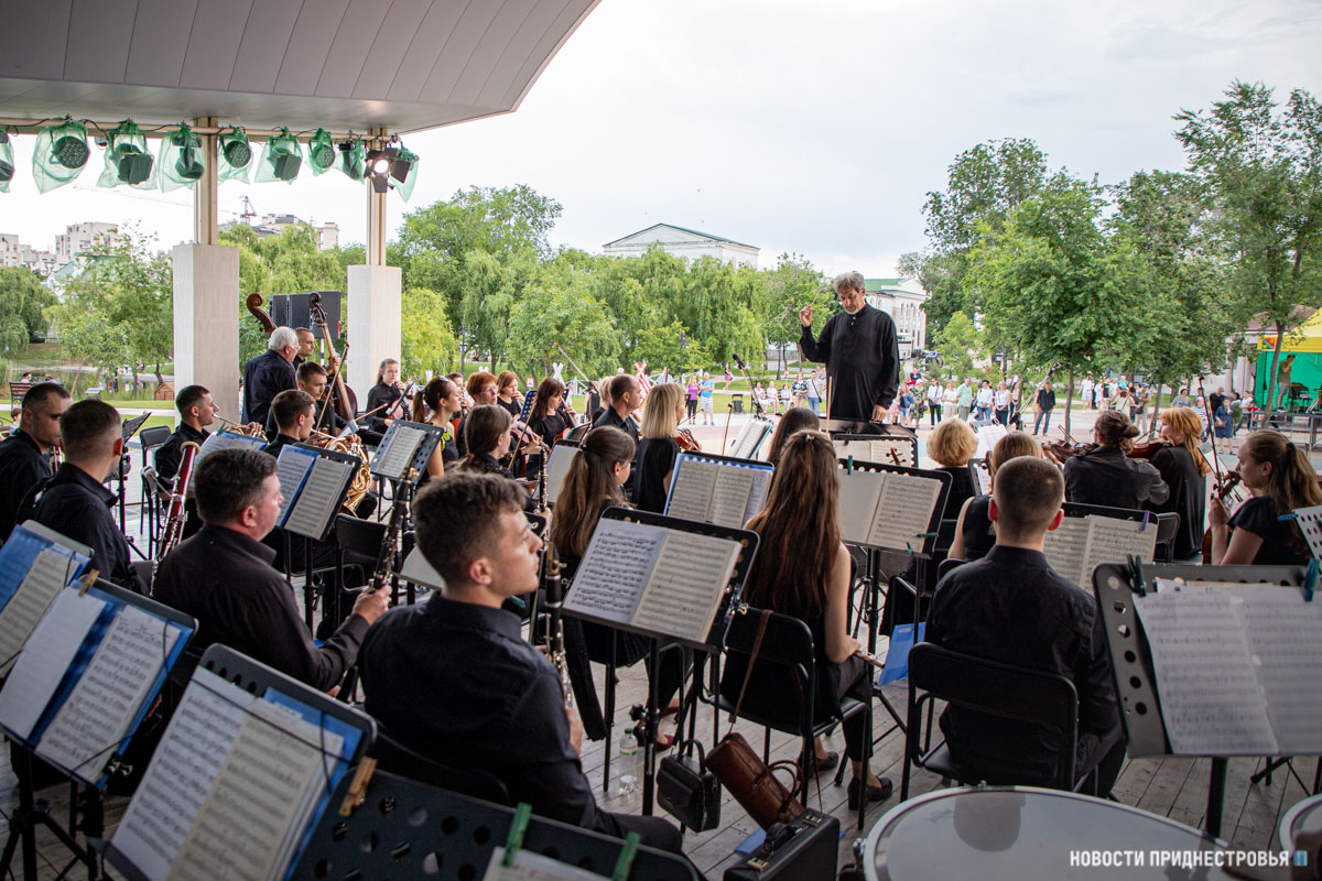 Завершил праздничный вечер концерт Государственного симфонического оркестра под руководством Народного артиста ПМР Григория Мосейко. На сценической площадке Екатерининского парка звучали композиции Петра Чайковского - вальс из балета «Лебединое озеро», полонез из оперы «Евгений Онегин» и «Пляска скоморохов» из сюиты «Снегурочка»; Андрея Петрова - «Поезд» из кинофильма «Белый Бим черное ухо»; Исаака Дунаевского - марш из фильма «Цирк»; Арама Хачатуряна - вальс из кинофильма «Маскарад», лезгинка и многие другие.