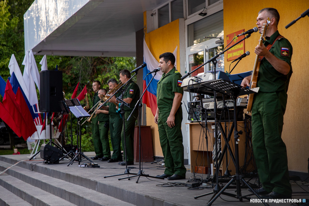 Праздничное настроение создавали музыканты и вокалисты эстрадного духового оркестра «Красная звезда». Они исполнили известные российские песни. Тираспольчане тепло встретили артистов, поддерживали их аплодисментами, подпевали и даже танцевали.
