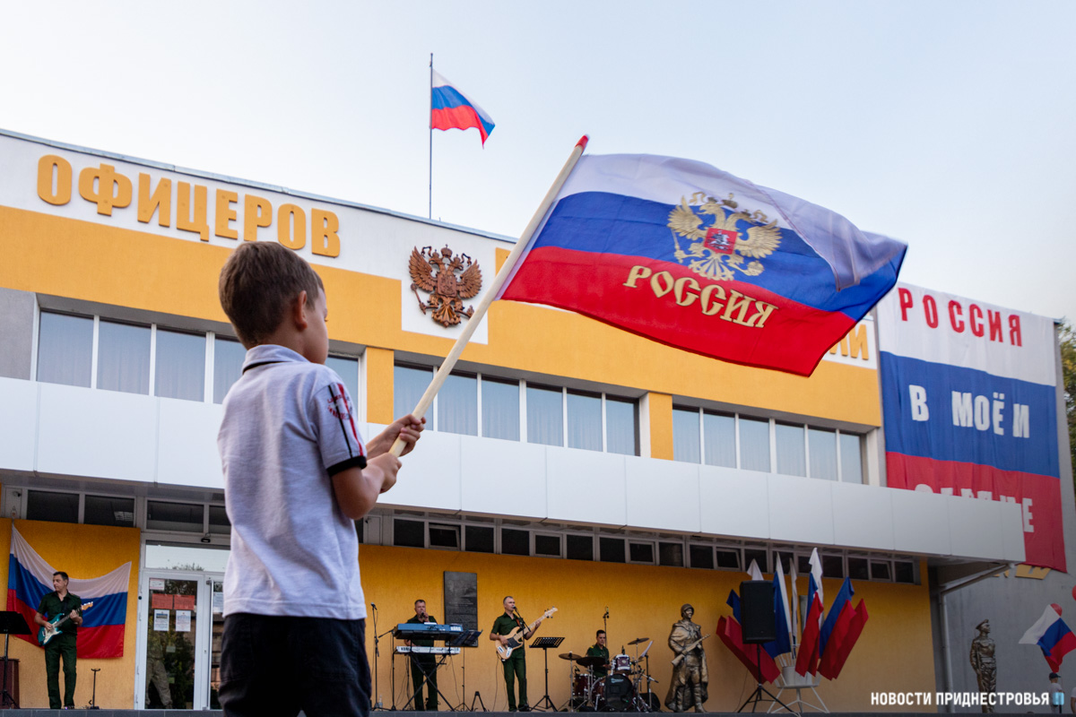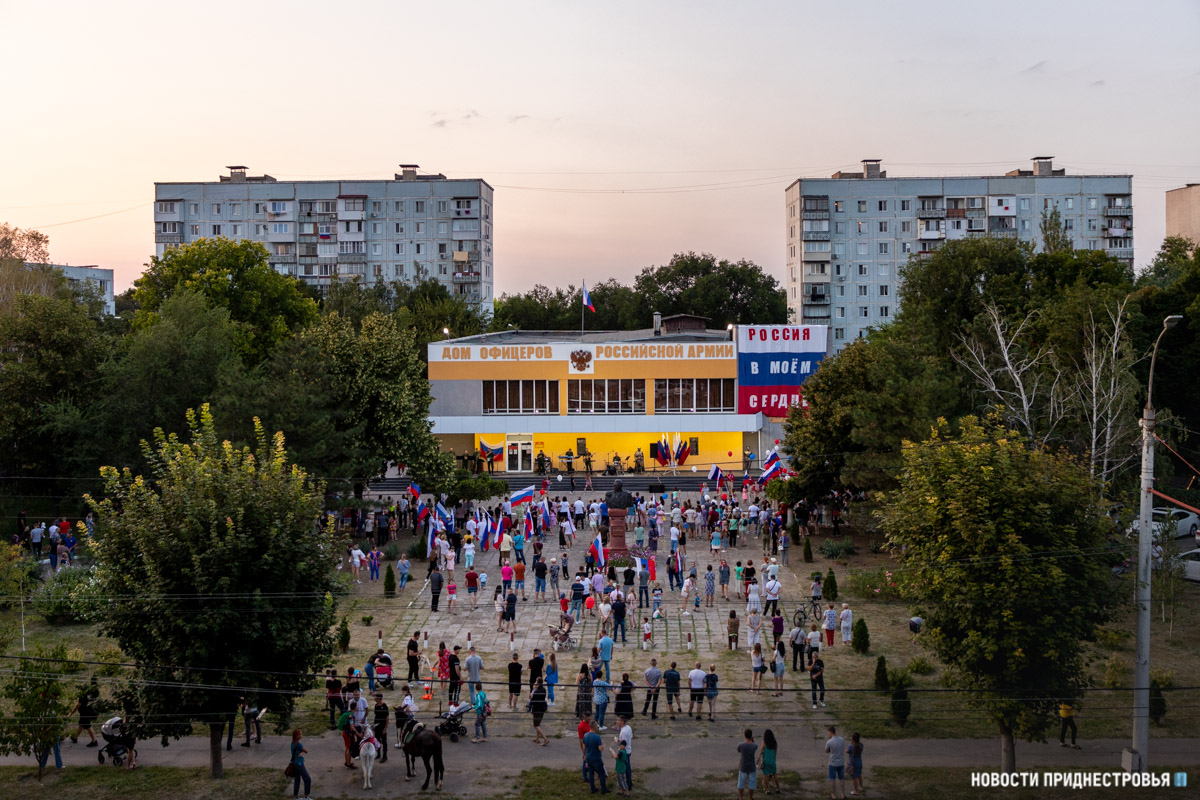 Тирасполь, 22 августа. /Новости Приднестровья/. В Тирасполе прошёл праздничный концерт ко Дню Государственного флага России. У столичного Дома офицеров собрались жители города и юнармейцы.