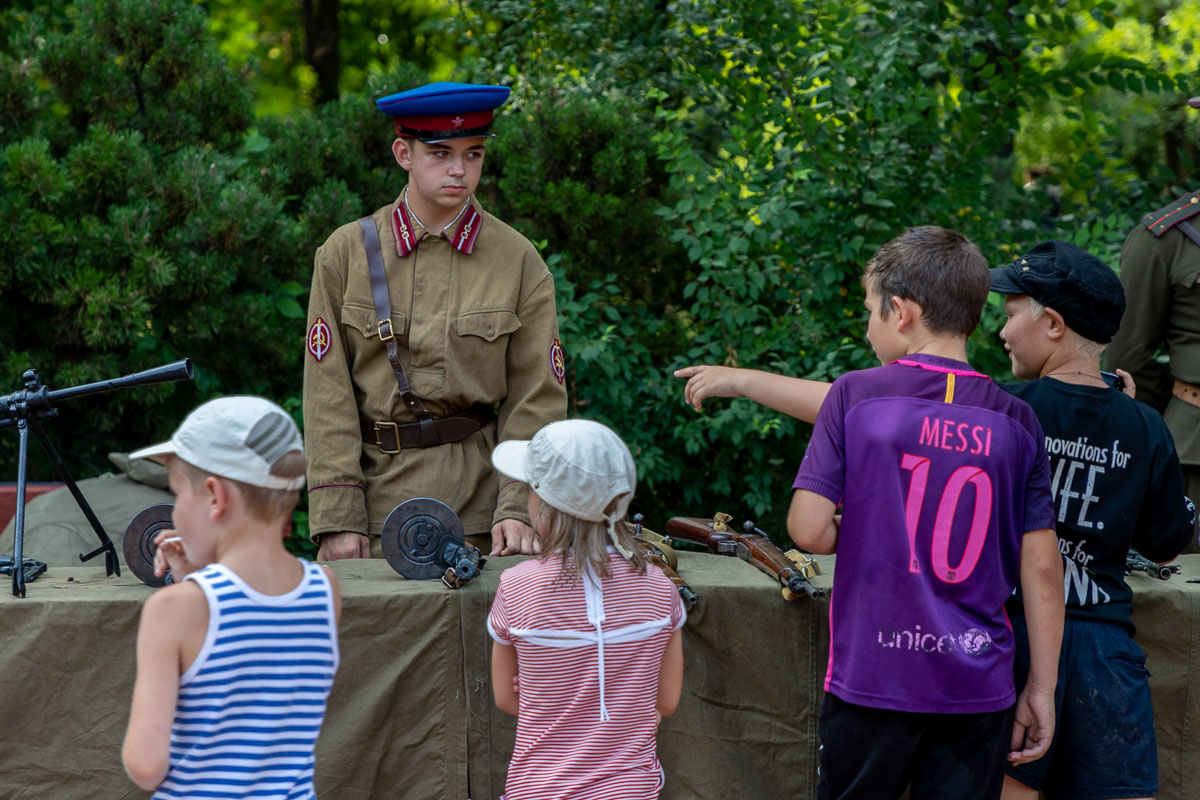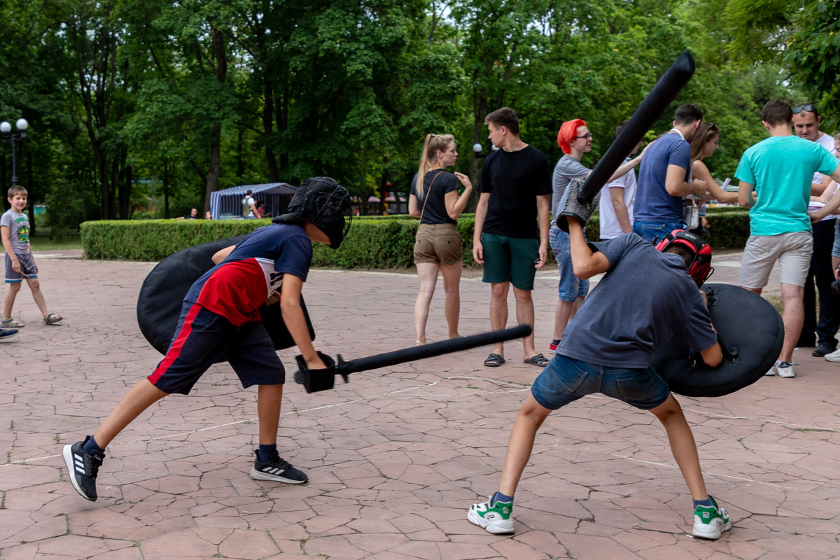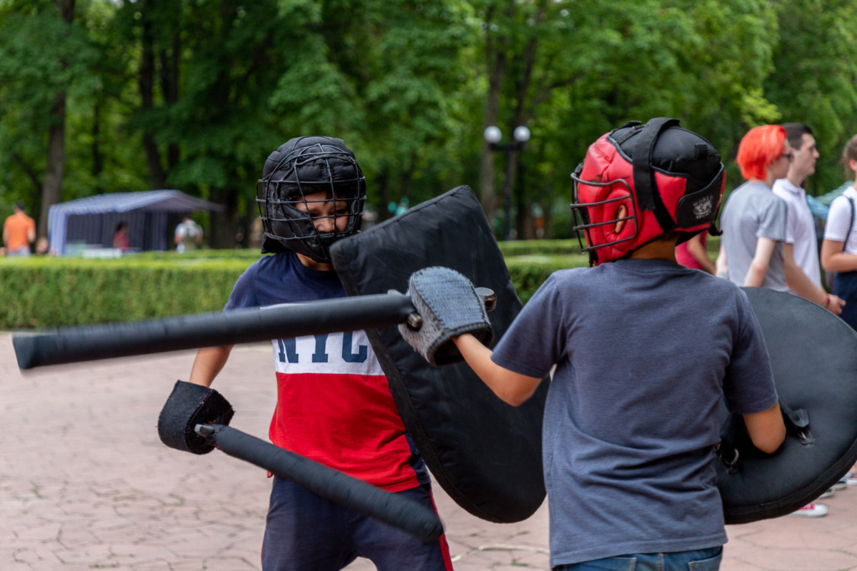 Для тех, кто хотел почувствовать себя рыцарем, общественное патриотическое движение «Молодая республика» организовало любительские соревнования по штыковому бою. Такой вид сражения к нам пришёл ещё со времён Наполеона. Но на празднике никакой опасности этот бой не представлял: были шлемы для защиты и специальная броня. Также всем, кто желал сразиться в таком виде, объяснили правила ведения боя.