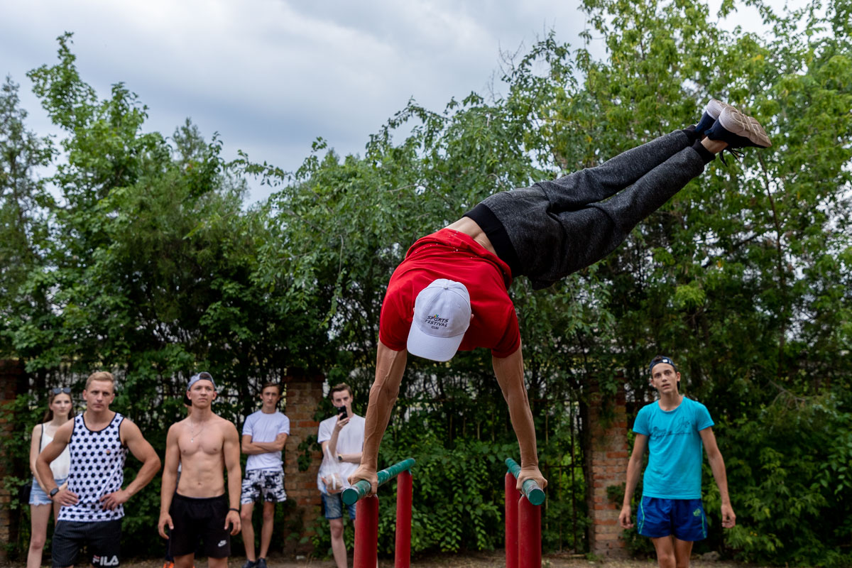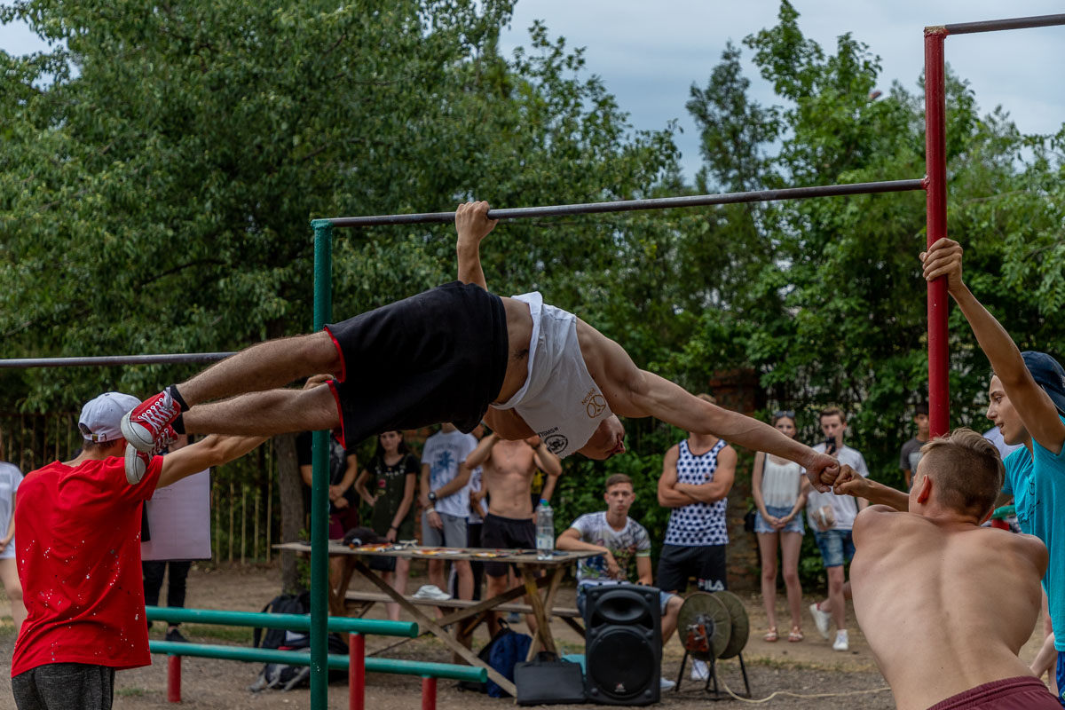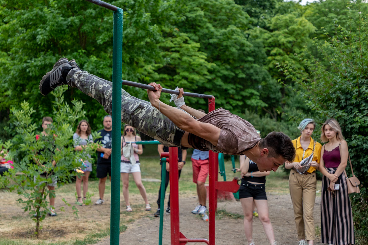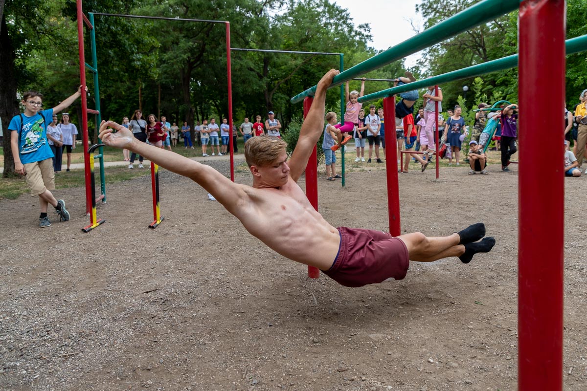 Ещё одну активную поляну подготовили волонтёры «Поможем вместе». В спортивном городке парка они организовали площадку по воркауту, где каждый желающий мог проверить свои силы. Самые ловкие молодые люди по итогам соревнований получили грамоты и призы.