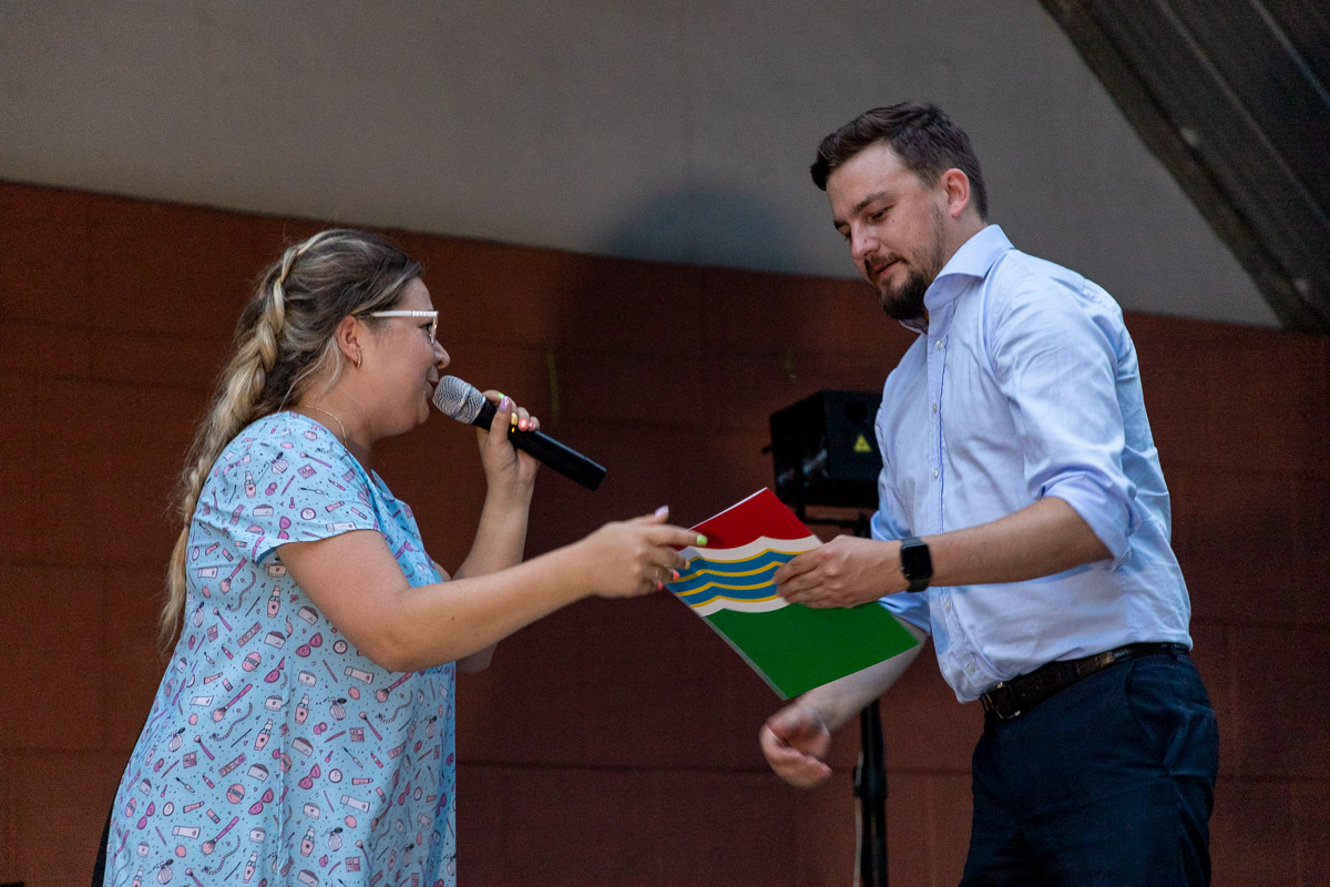 В конце вечера на летней эстраде подвели итоги работы площадок и наградили самых активных молодых людей. После этого всех ожидал праздник красок холи, которые стали уже практически неотъемлемой частью летних мероприятий. Молодёжь всегда с большой радостью участвует в этом красочном зрелище. Ярким завершением вечера стало лазерное шоу.
