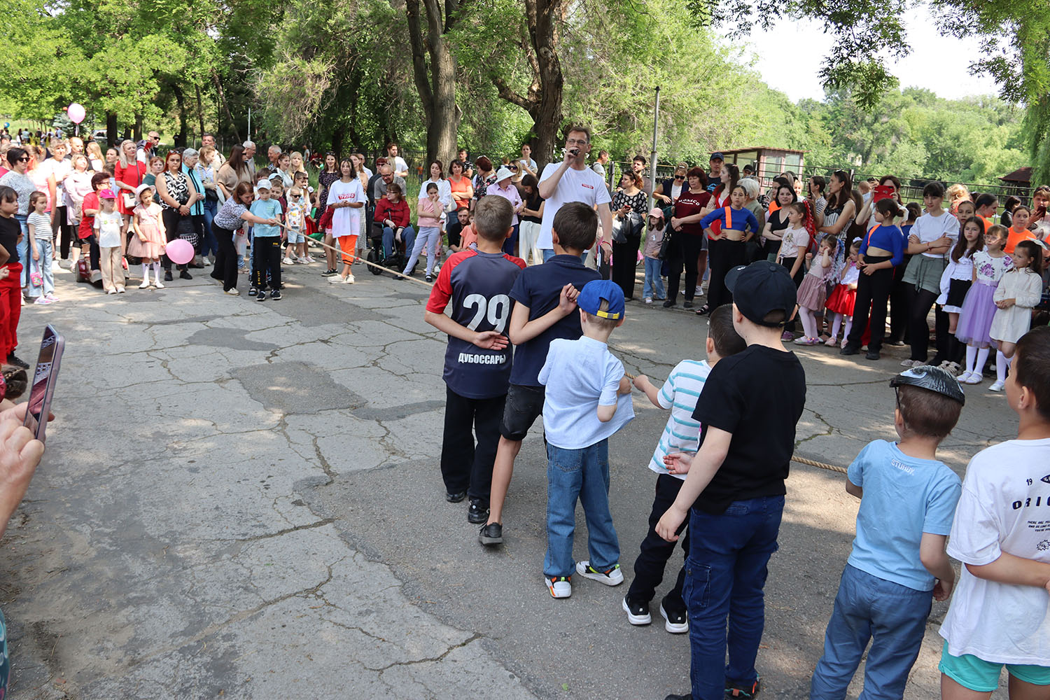 Участники конкурсов по перетягиванию каната, прыганию на скакалке и через резинку, рисунков на асфальте получили призы. Работали аттракционы, было и дог-шоу.