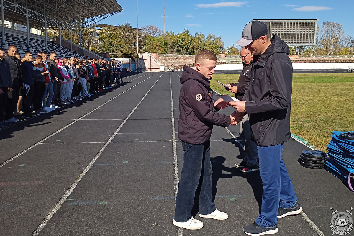 Далее в программе были бег на 1 000 м и эстафета 4х100. Самыми быстрыми в забеге на один километр оказались курсанты Игорь Ерёменко и Федора Мырзак. В эстафете победу одержали курсанты 4-го курса.