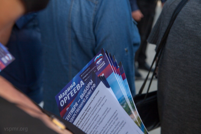 Говоря о выборах в Госдуму РФ, которые пройдут 19 сентября, Олег Петрик призвал жителей проявить активную гражданскую позицию и проголосовать за достойного кандидата, который будет представлять в российском парламенте интересы приднестровцев. Сейчас актуальным является вопрос работы пункта выездного консульского обслуживания в Тирасполе. Эта и другие проблемы были озвучены во время приезда в Приднестровье российских депутатов, в том числе и новых кандидатов в депутаты Госдумы РФ VIII созыва. С жителями города Бендеры встречались представители партии «Единая Россия» Марина Оргеева и Андрей Горохов. В российский парламент они избираются от Калининградской области и Бендер.