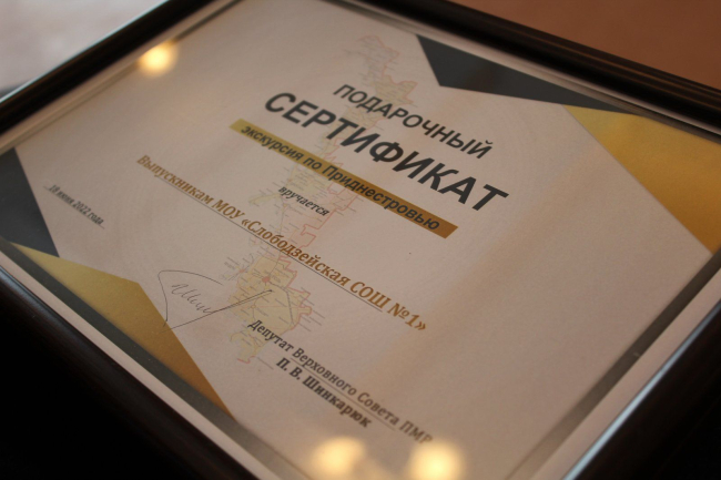 Как сообщила парламентская пресс-служба, депутат Верховного Совета подарил ребятам сертификаты на экскурсию по Приднестровью. Окончание школы выпускникам запомнится встречей с красивейшими уголками и достопримечательностями нашего края.