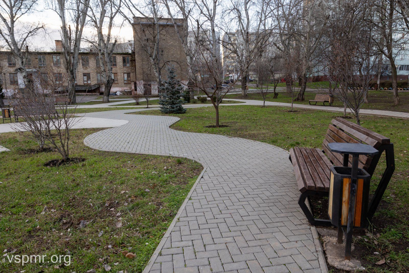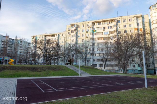 «Здесь была советская баскетбольная площадка со старыми кольцами и разломанным асфальтом. Эффект от стука баскетбольного мяча в колодце многоэтажек создавал акустический дискомфорт. Теперь здесь будет зона воркаута, детская площадка и зона отдыха для старшего поколения», – рассказал депутат Верховного Совета ПМР Юрий Кучеренко.