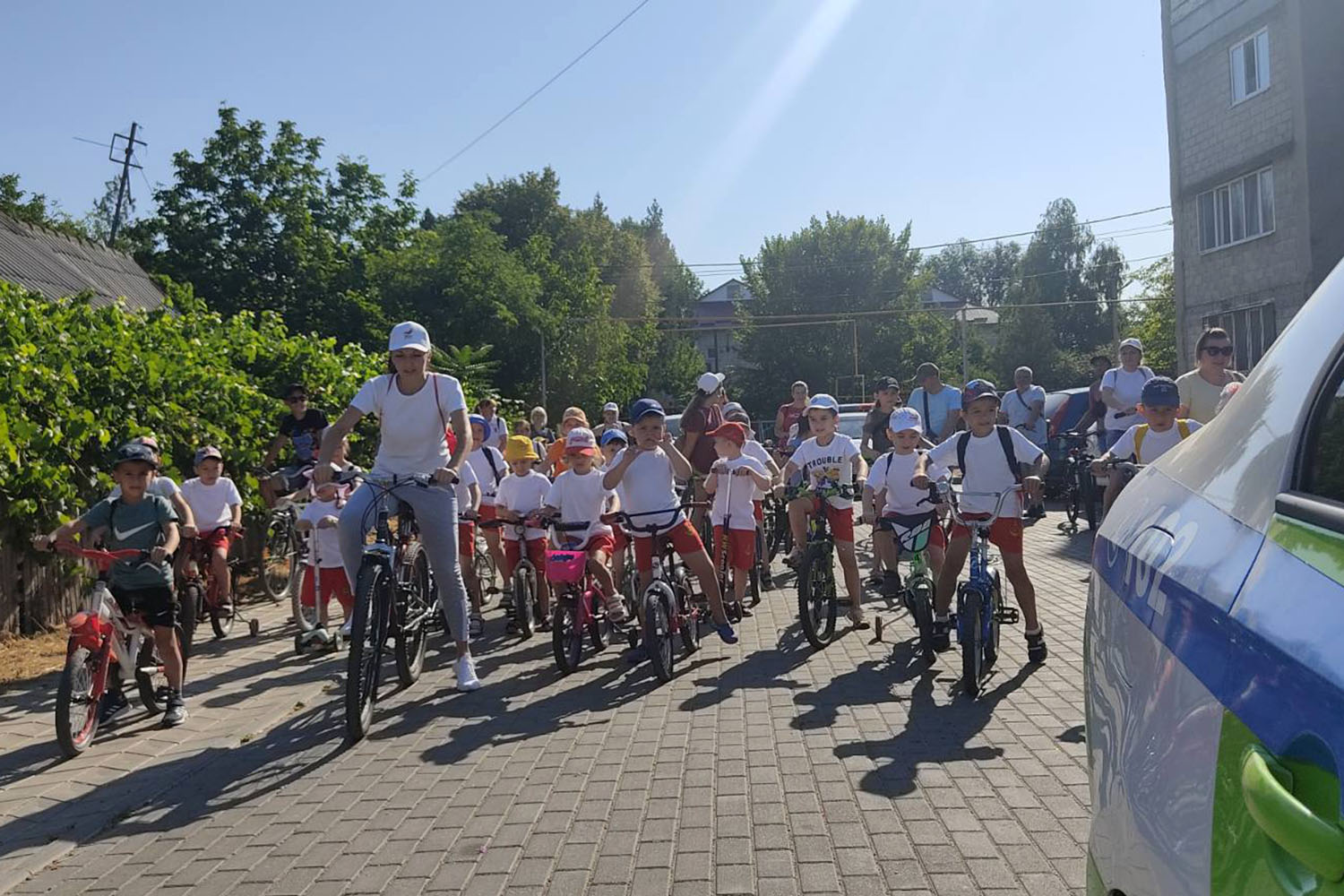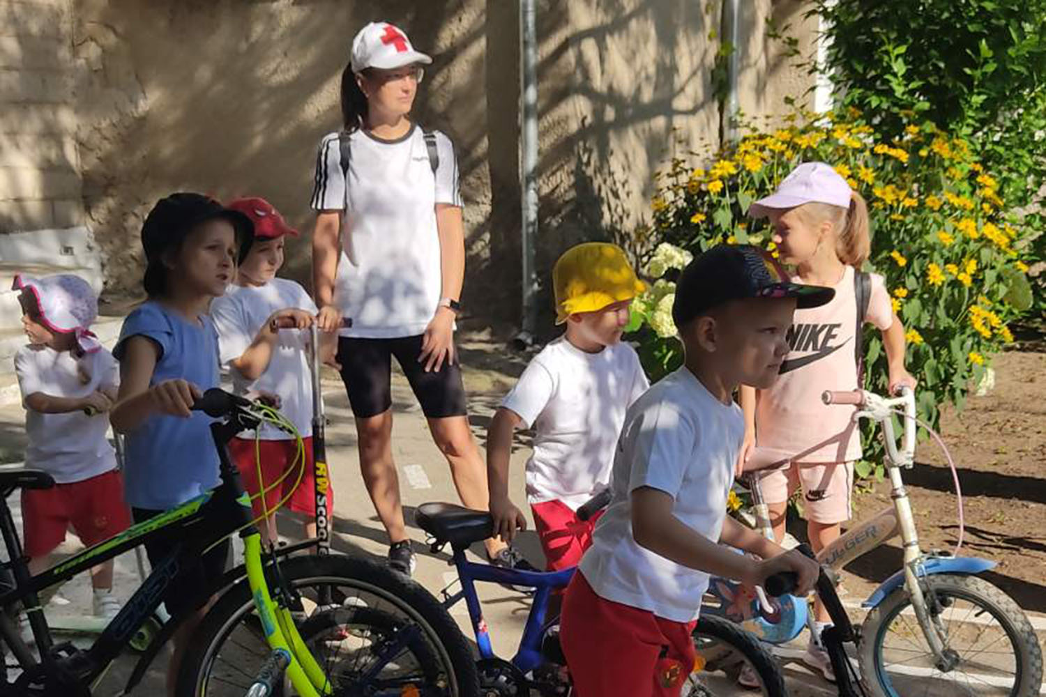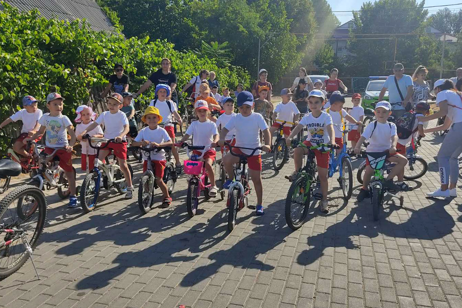 Перед заездом заведующая детским садом «Радуга» Наталья Заплющенко напомнила детям, как нужно вести себя на дороге, предупредила об обязательной взаимопомощи и о соблюдении изученных правил дорожного движения.