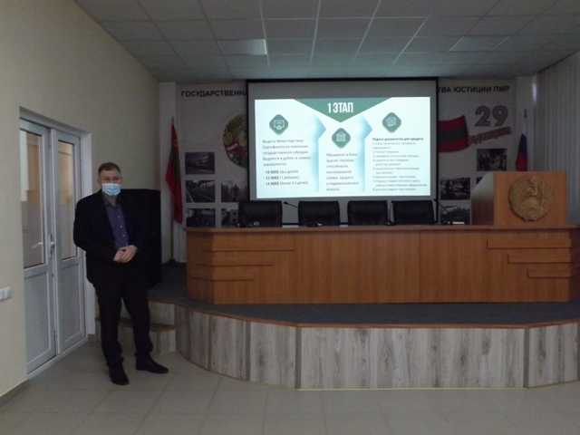 С обладателями сертификатов встретились представители «Приднестровского Сбербанка». В своей презентации они подробно рассказали об этапах получения госсубсидии, ознакомили с процедурой выплаты платежей по ипотечному кредиту. Особое внимание уделили суммам, которые вносит сам заемщик и которые погашаются за счет государства.
