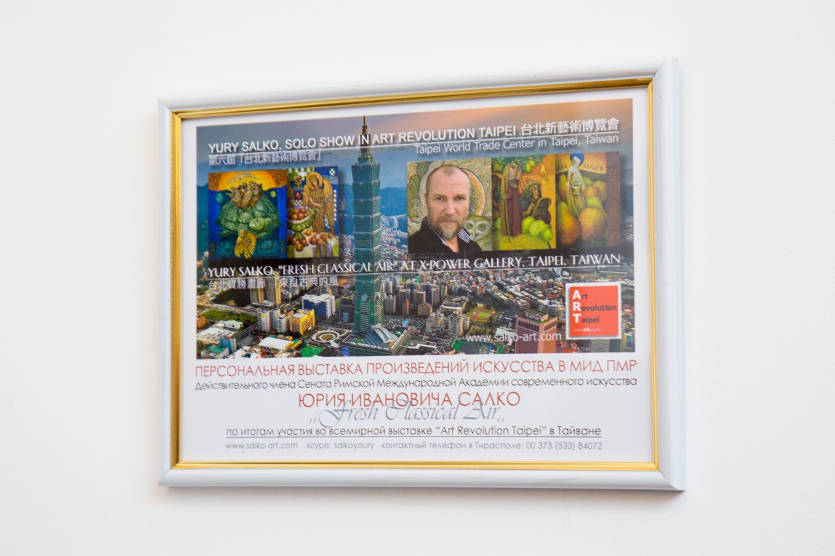 «Мне посчастливилось попасть в десятку тех художников с мировыми именами, которые представляли «Арт Революшн Тайпей» на трёх континентах. Нас там встречали с радушием, с очень трепетным отношением к картинам из Приднестровья. Я видел, как они их принимали, как бережно выставляли и какие восторженные отзывы были о нашей приднестровской живописи. Проект назывался «Свежий ветер классики». Часть выставляемых в Тайване работ вернулась, и мы решили их представить в стенах МИДа в канун Дня сотрудника дипломатической службы и 25-летия международной ассоциации работников культуры и искусства «МАРКИС»», - отметил именитый художник.