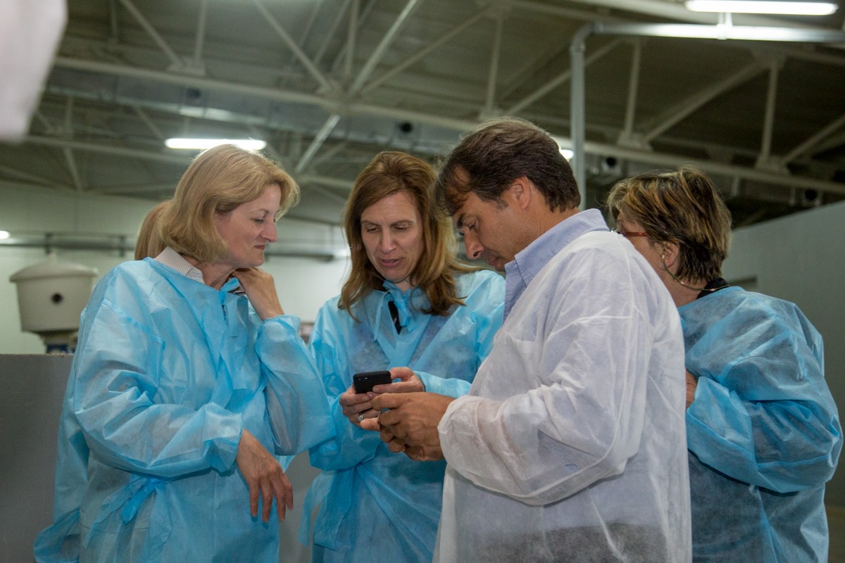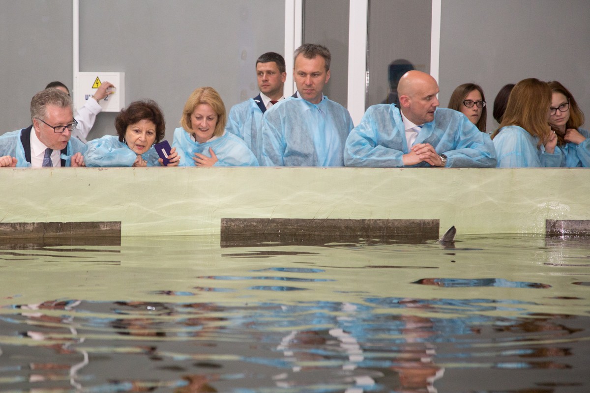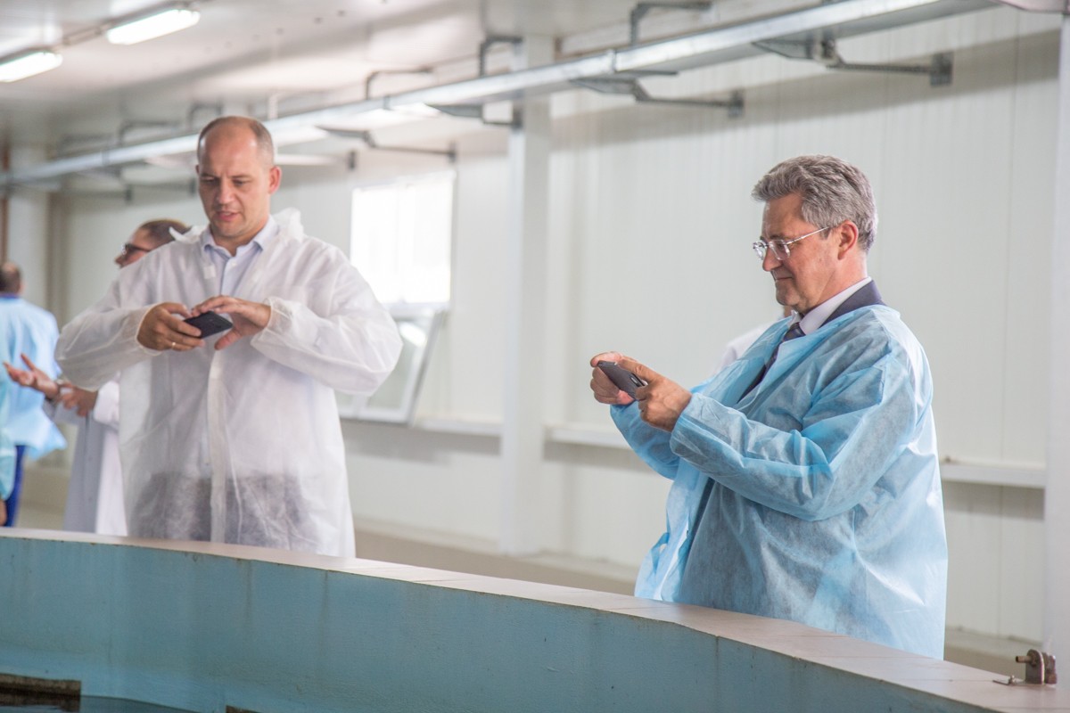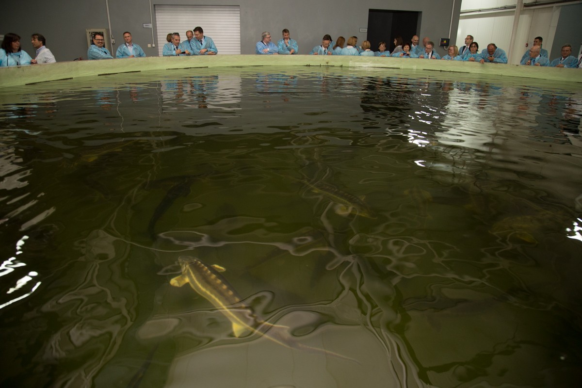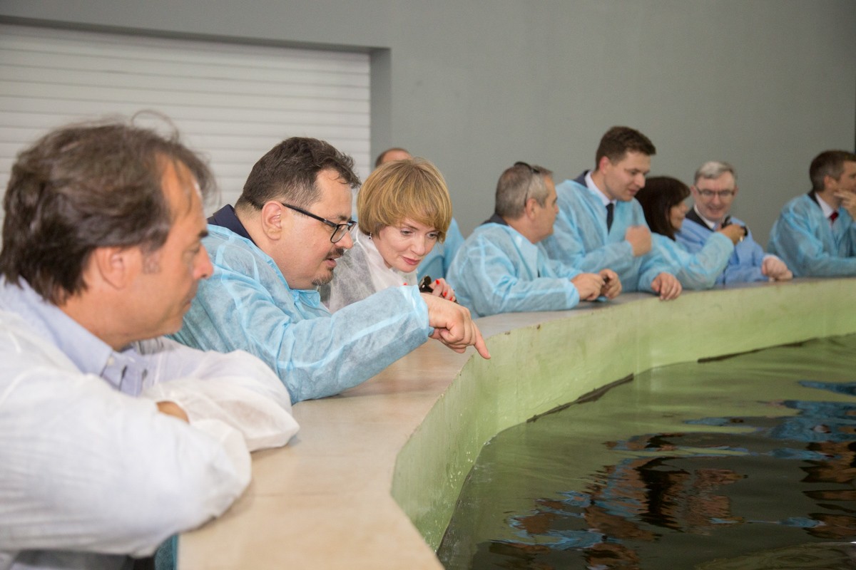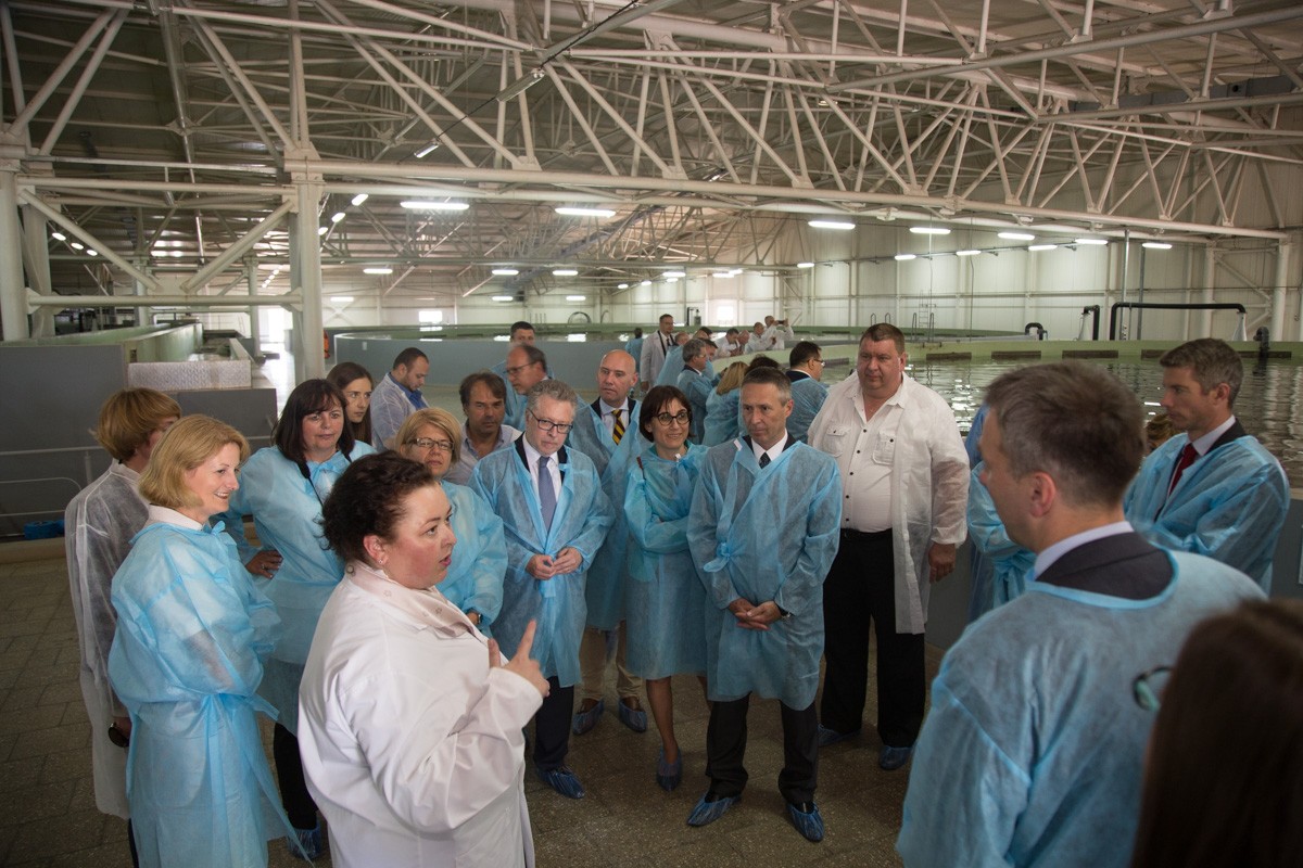 Как опытный художник, представитель предприятия широкими мазками обрисовала масштабы производства: 12 объектов, где содержится 350 тонн белуги, осетра, стерляди и бестера, 1,5 тонны икры в год. Европейцев интересовало, как соблюдается санитарно-ветеринарный контроль, сколько икры продают ежегодно и куда она идёт. Впрочем, самое большое впечатление оставили сами производители икры. Отбросив дипломатическую сдержанность, гости фотографировали огромных рыб не хуже заядлых туристов.