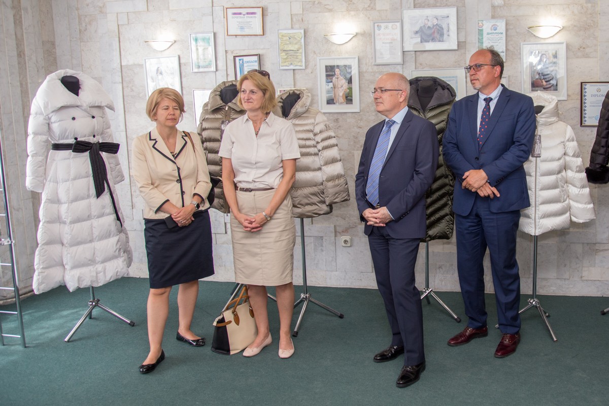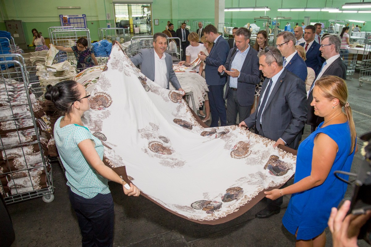 Вторым предприятием, которое показали дипломатам, стала фирма «Интерцентр Люкс». Единственное в Молдове предприятие, которое поставляет на экспорт собственную продукцию из натурального пуха. В сезон отгружают более 100 тысяч комплектов. Гостям рассказали о работе с известными европейскими марками, а также о развитии собственного бренда «Madzerini». А краткое дефиле показало, как эта одежда сидит на фигуре.