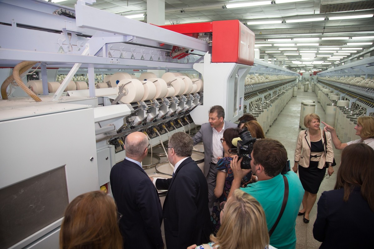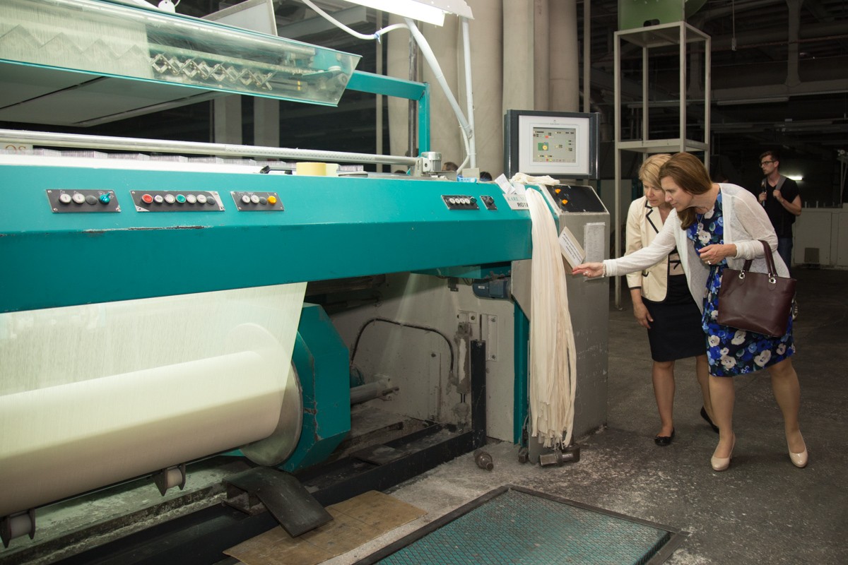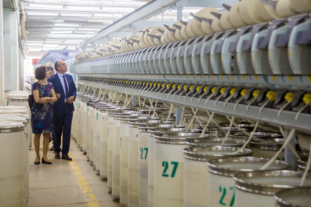 «О, она такая мягкая, я думаю, из неё выйдет прекрасная ткань, это вправду изумительный материал. Я под большим впечатлением от увиденного сегодня, думаю, это весьма качественное производство и превосходное оборудование. Рада, что видела это. – Что скажете английским бизнесменам о перспективах инвестиций в приднестровскую экономику? – Ну, скажу, что здесь есть потенциал, это очевидно. Конечно, это коммерческое решение самих компаний, но если компании придут ко мне, я расскажу всё, что об этом знаю», – говорила Чрезвычайный и Полномочный Посол Великобритании и Северной Ирландии в РМ Люси Джойс, сидя на готовящейся к производству пряже.