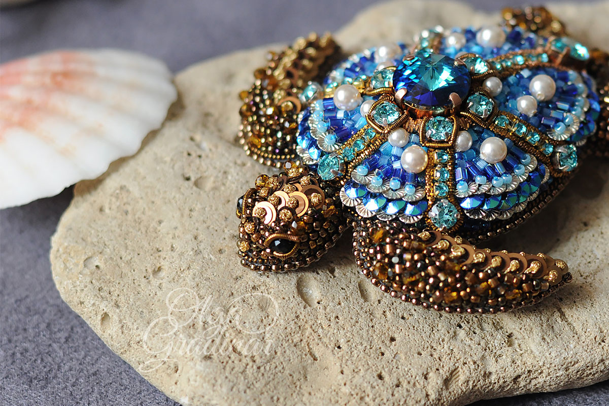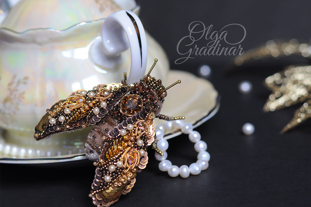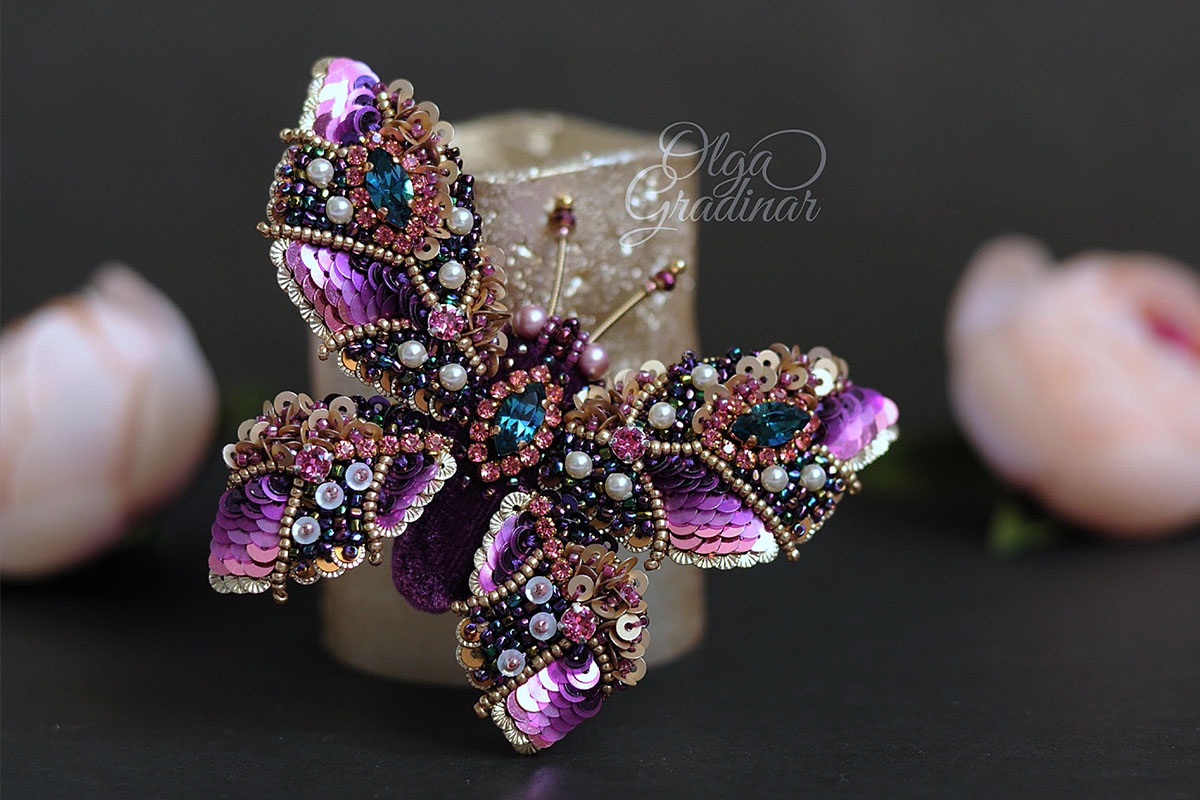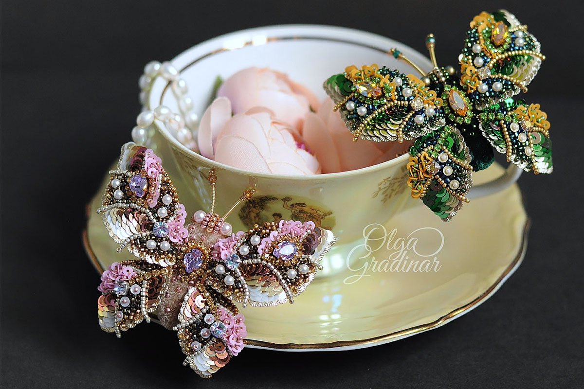 За 4 года Ольга Градинар создала несколько сотен уникальных украшений. Ее визитная карточка - флористические и анималистические мотивы. В изготовлении брошей, серег, нагрудных знаков рукодельница использует только лучшие материалы: французские и итальянские пайетки, кристаллы и жемчуг Сваровски, японский и чешский бисер, шелковый бархат, канитель, хрустальные бусины и натуральный жемчуг.