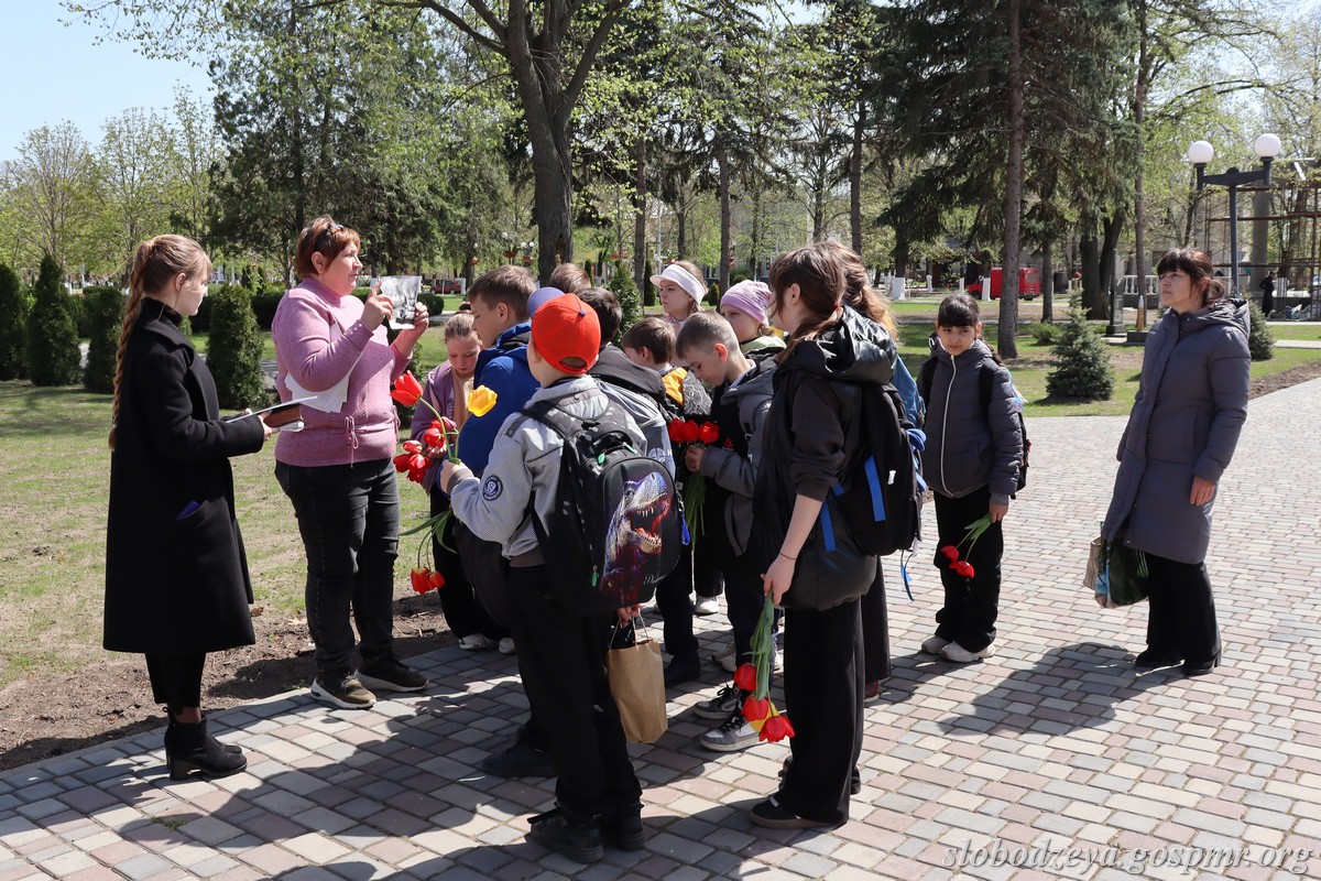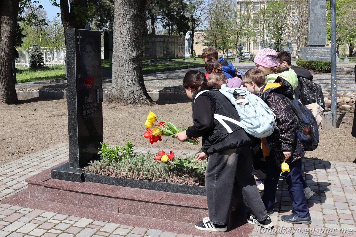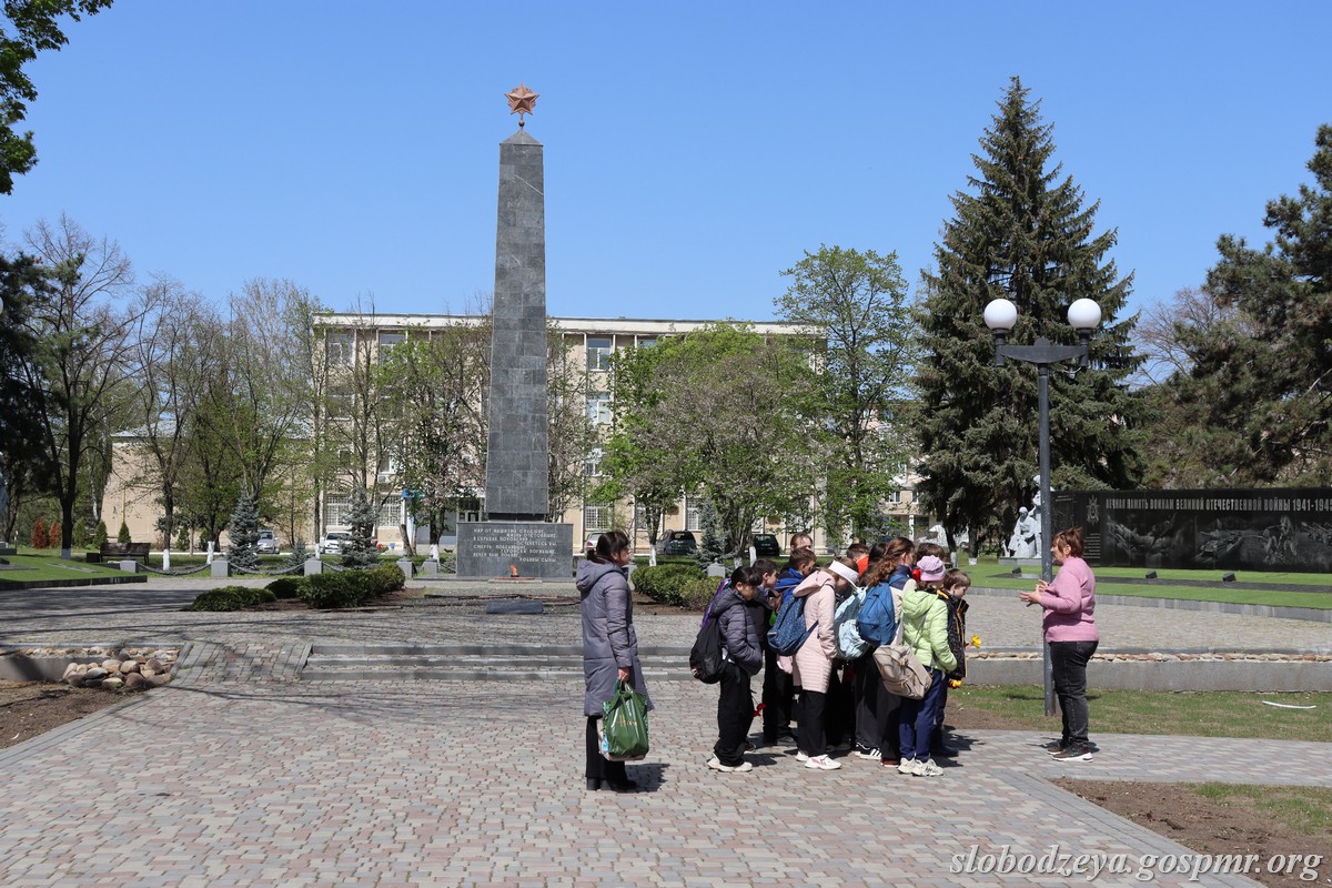 Пешую экскурсию к Мемориальному комплексу воинской Славы организовали для учащихся 4-го класса городской школы № 1. Ребятам рассказали об истории памятника, о воинах-земляках, погибших в период Великой Отечественной войны, об освобождавших Слободзею в 1944 году, о погибших защитниках ПМР и о воинах-интернационалистах. Ребята возложили живые цветы к памятникам мемориального комплекса и Вечному огню.