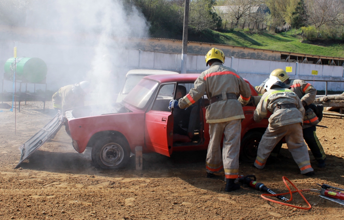 Спасатели преодолели полосу препятствий, ликвидировали пролив опасных химических веществ, извлекли пострадавших из колодца и макета повреждённого в ДТП автомобиля, разобрали завал при обрушении здания.