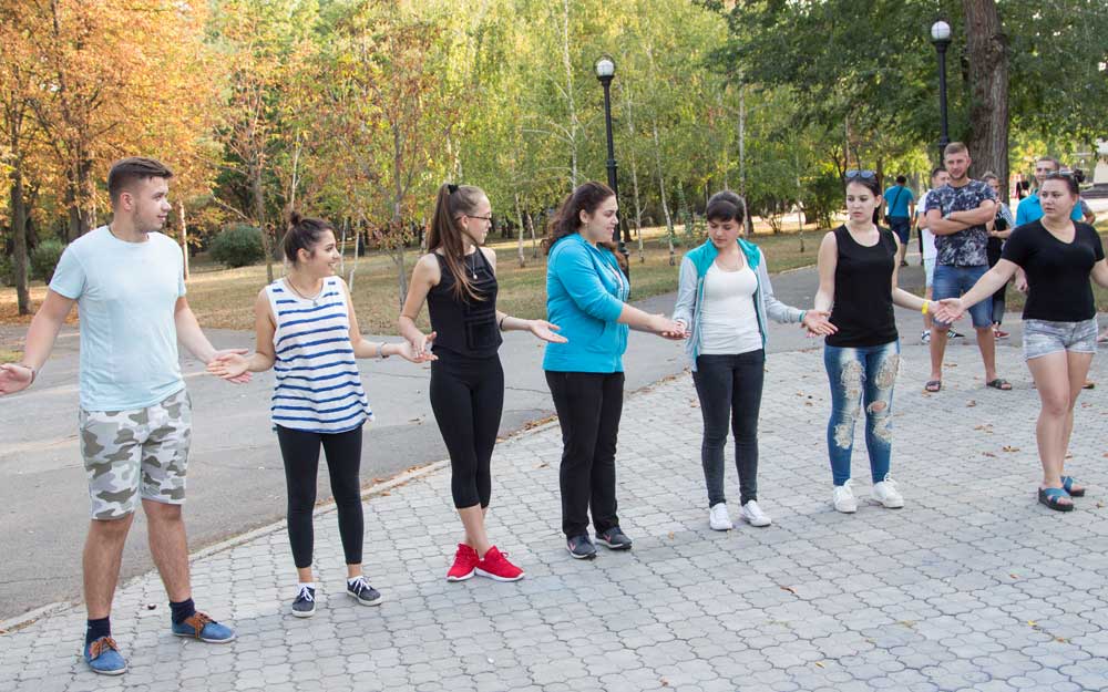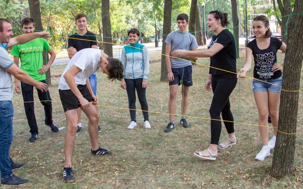 Тирасполь, 26 сентября. Новости Приднестровья/. В преддверии Дня ПГУ для первокурсников, проживающих в общежитии, организовали интерактивную программу «Верёвочный курс» и тренинги знакомства.
