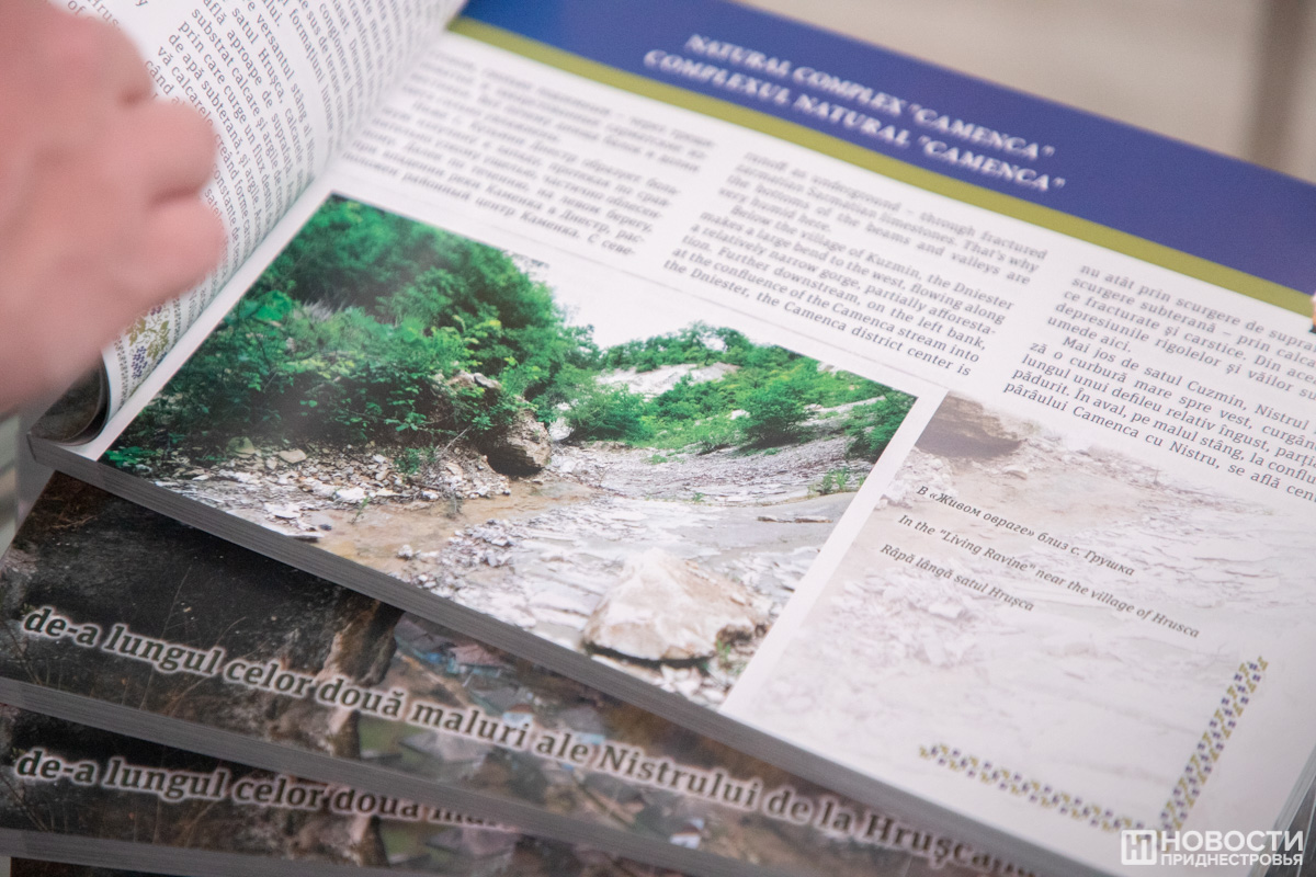Издание полиязычное: на каждой странице рядом русский, английский и молдавский. Интересно ещё и тем, что все данные взяты из научных источников, а все туристические маршруты протестированы самими авторами. Как отметили на презентации, они во время сбора материала «намотали 7 тысяч километров» по территории Приднестровья и Молдовы.