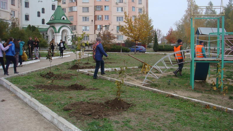 Во время акции днестровчане высадили липу, клен, катальпу, боярышник, дуб, гибискус, самшит, жасмин и другие виды растений.