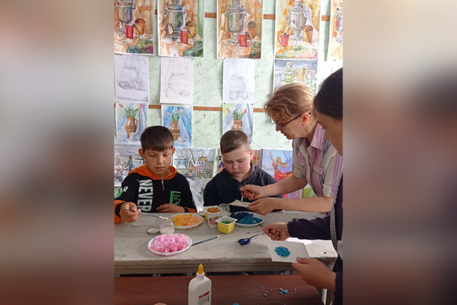Преподаватели высшей квалификационной категории Оксана Пономаренко и Дильнара Турсунова, набирающие учащихся в 1-й класс, провели для ребят мастер-классы. Дильнара Асымжановна познакомила гостей с техникой монотипии и предложила желающим нарисовать бабочку. Оксана Владимировна знакомила ребят с техникой создания гобелена.