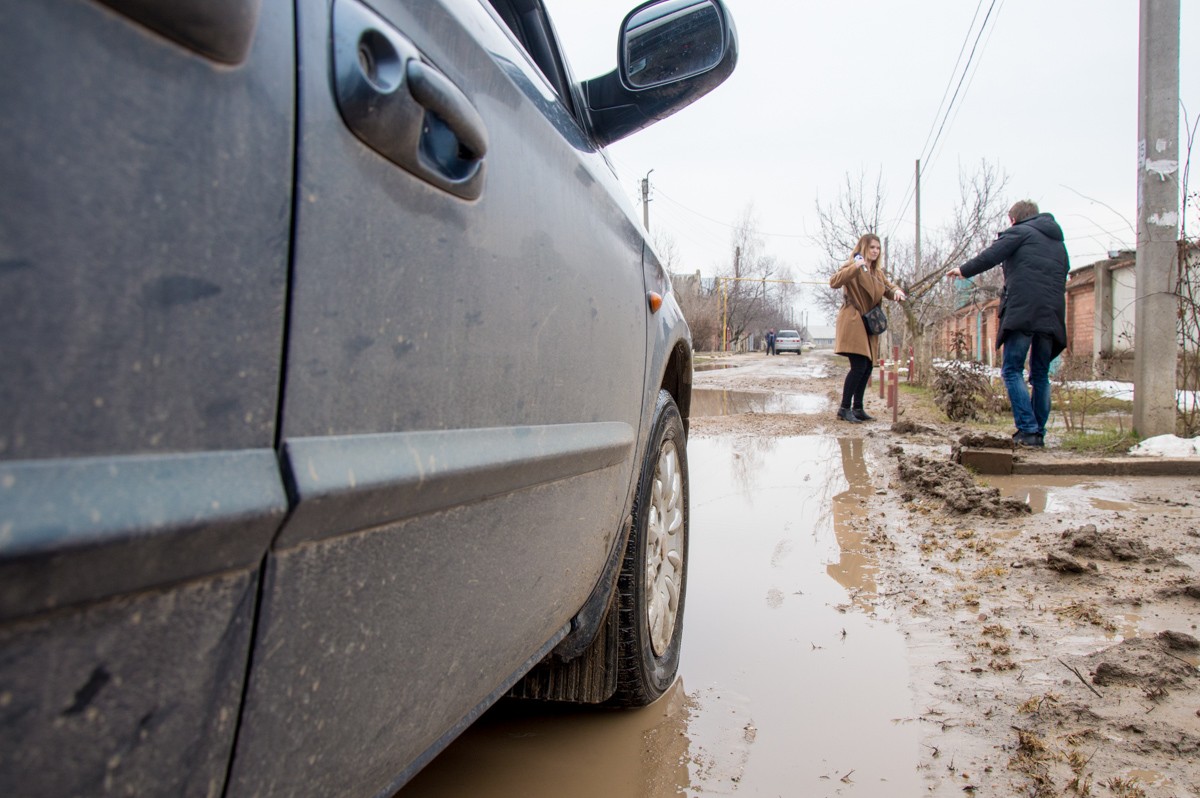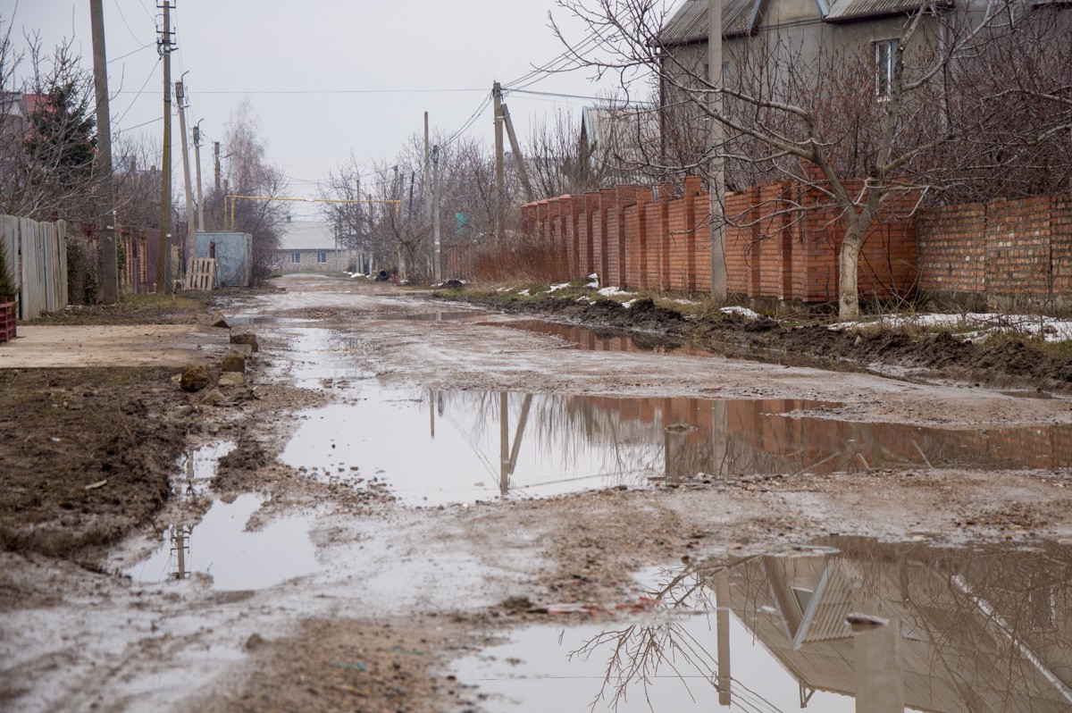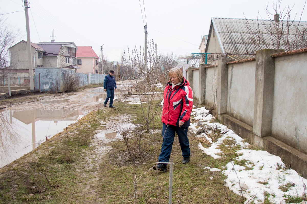 «На данный момент осталось только 30% проблемы, потому что были большие ледяные глыбы, и даже на машине с немалым клиренсом проехать было невозможно. Ехали на первой передаче и перепрыгивали с одного колеса на другое. По этой улице ходить невозможно, надо обязательно брать либо влево, либо вправо, прохода нет, земля залита лужами, и там ходить невозможно. Единственное, что осталось, – ходить по чужому газону», – говорит житель этой улицы Дмитрий Князев.