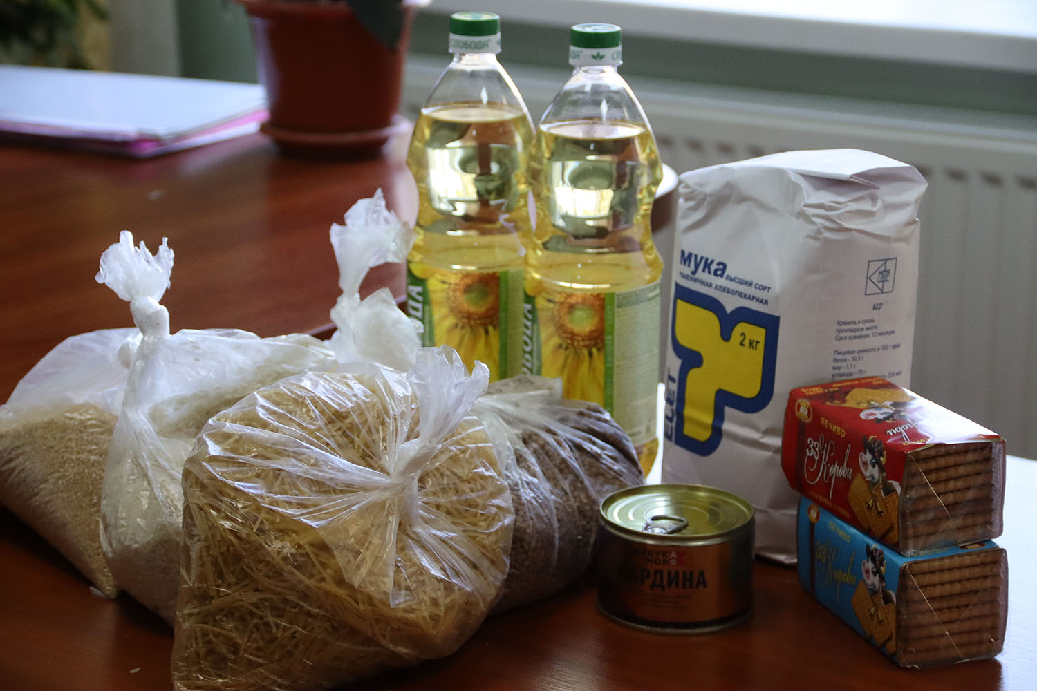 «В данный продуктовый набор вошли 5 видов круп, макаронные изделия, консервы, две бутылки масла подсолнечного, печенье, сахар, мука», - рассказала заместитель главы государственной администрации г. Дубоссары и Дубоссарского района по социальным вопросам Наталия Кравец.