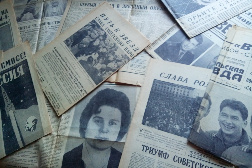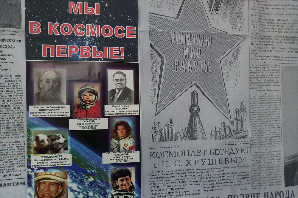 На выставке представлены советские газеты, рассказывающие о первых пилотируемых космических полётах, подвиге Юрия Гагарина. В апреле 1961 года газеты всего мира писали об этом удивительном событии XX века.