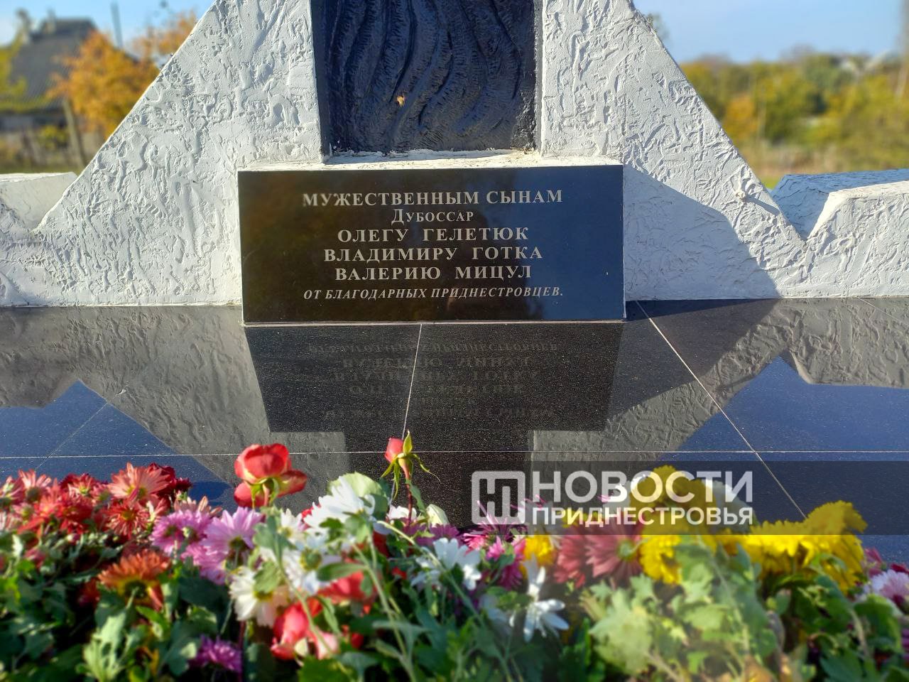 Дубоссарцы сегодня возложили живые цветы к месту гибели троих защитников Приднестровья и их могилам. Владимир Готка, Валерий Мицул и Олег Гелетюк покоятся на городском Мемориале Воинской Славы.