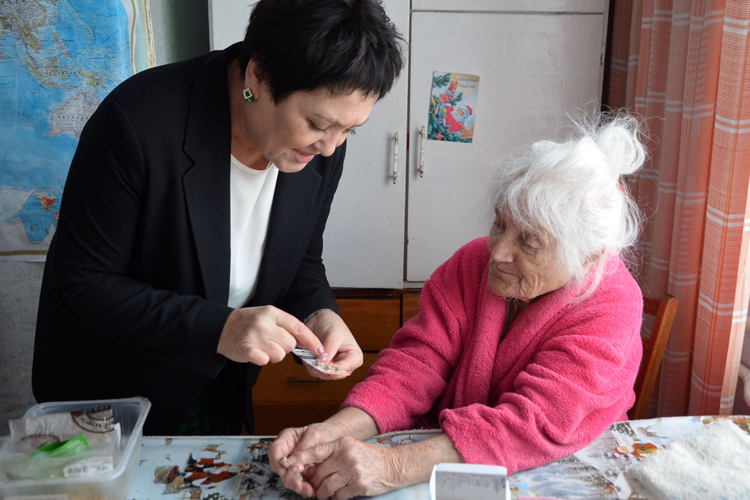 Например, 101-летняя вдова ветерана Великой Отечественной войны София Соколова. Муж умер много лет назад, детей нет. Сотрудники госадминистрации всегда оказывают посильную помощь пожилой женщине.