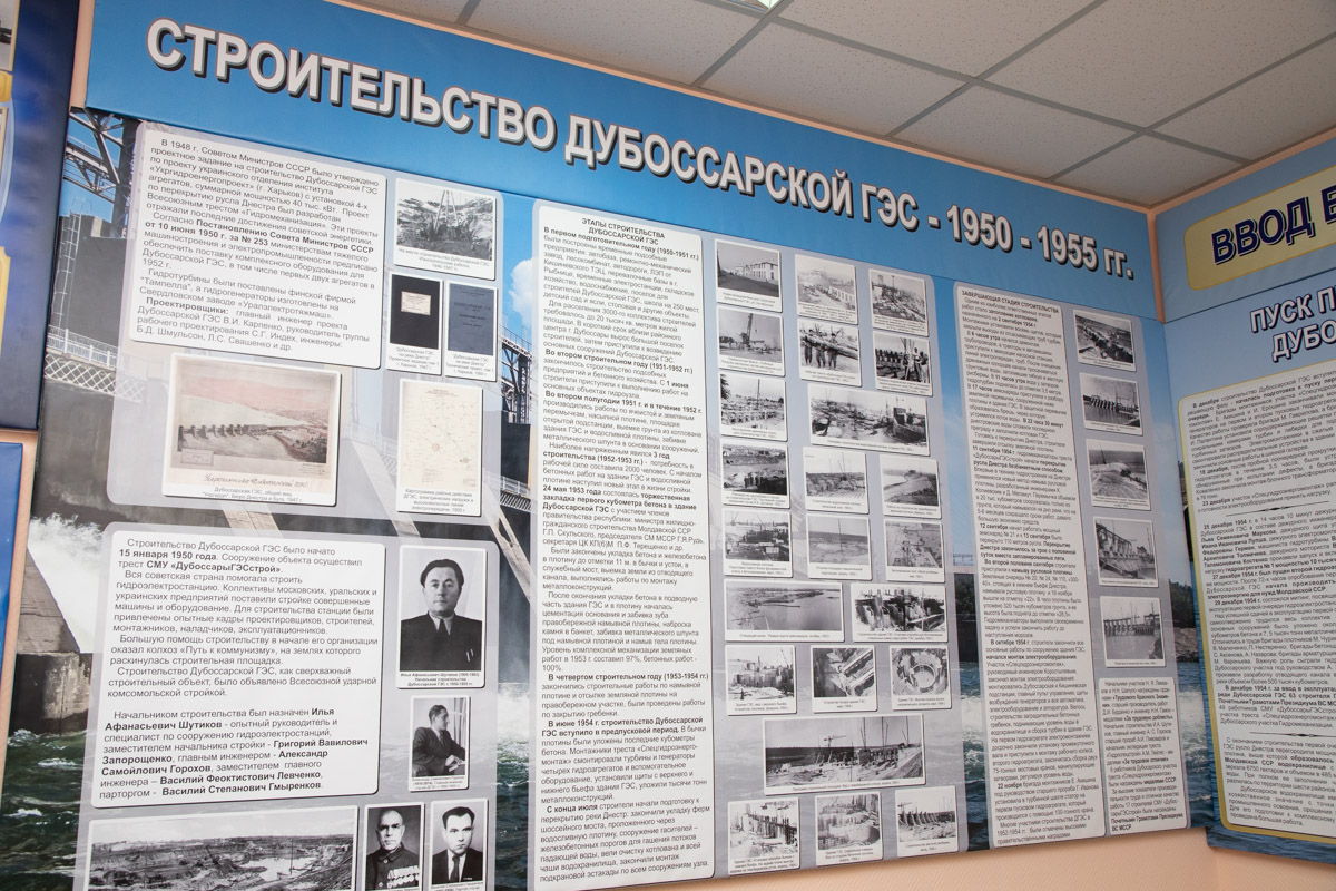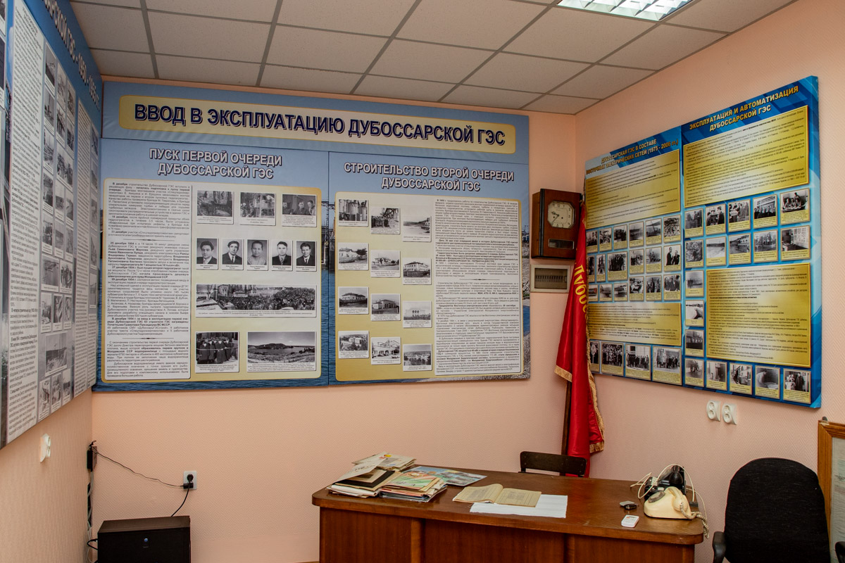 Идея создания собственного музея появилась у работников гидроэлектростанции давно. На сегодняшний день подготовлена только часть экспозиций. Здесь уже есть стол первого директора Дубоссарской ГЭС. На стендах размещены портреты специалистов, благодаря которым на Днестре появилась электростанция, а также информация о её строительстве.