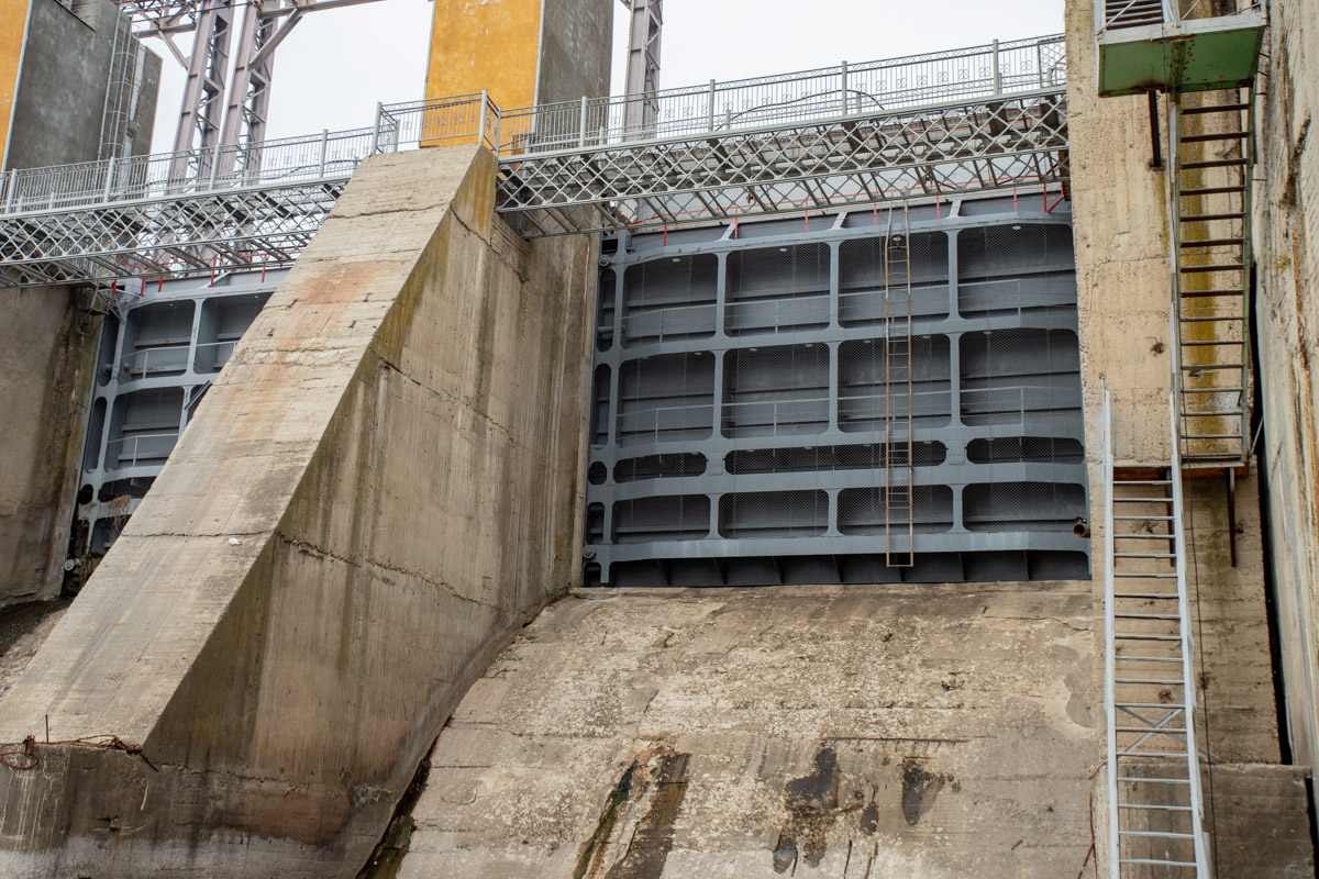 Водосливная плотина – гидротехническое сооружение, которое состоит из восьми затворов, необходимых для пропуска паводковых вод. Через один щит в секунду можно спустить 700 тонн воды.