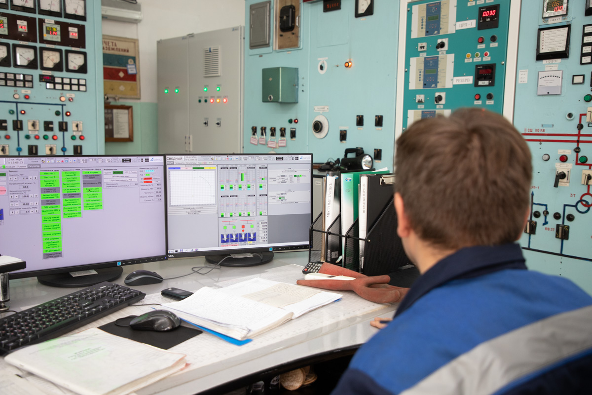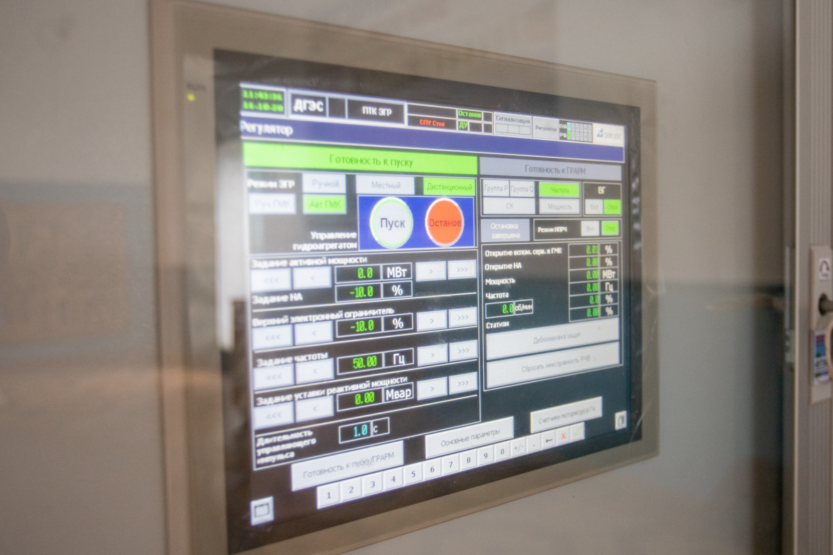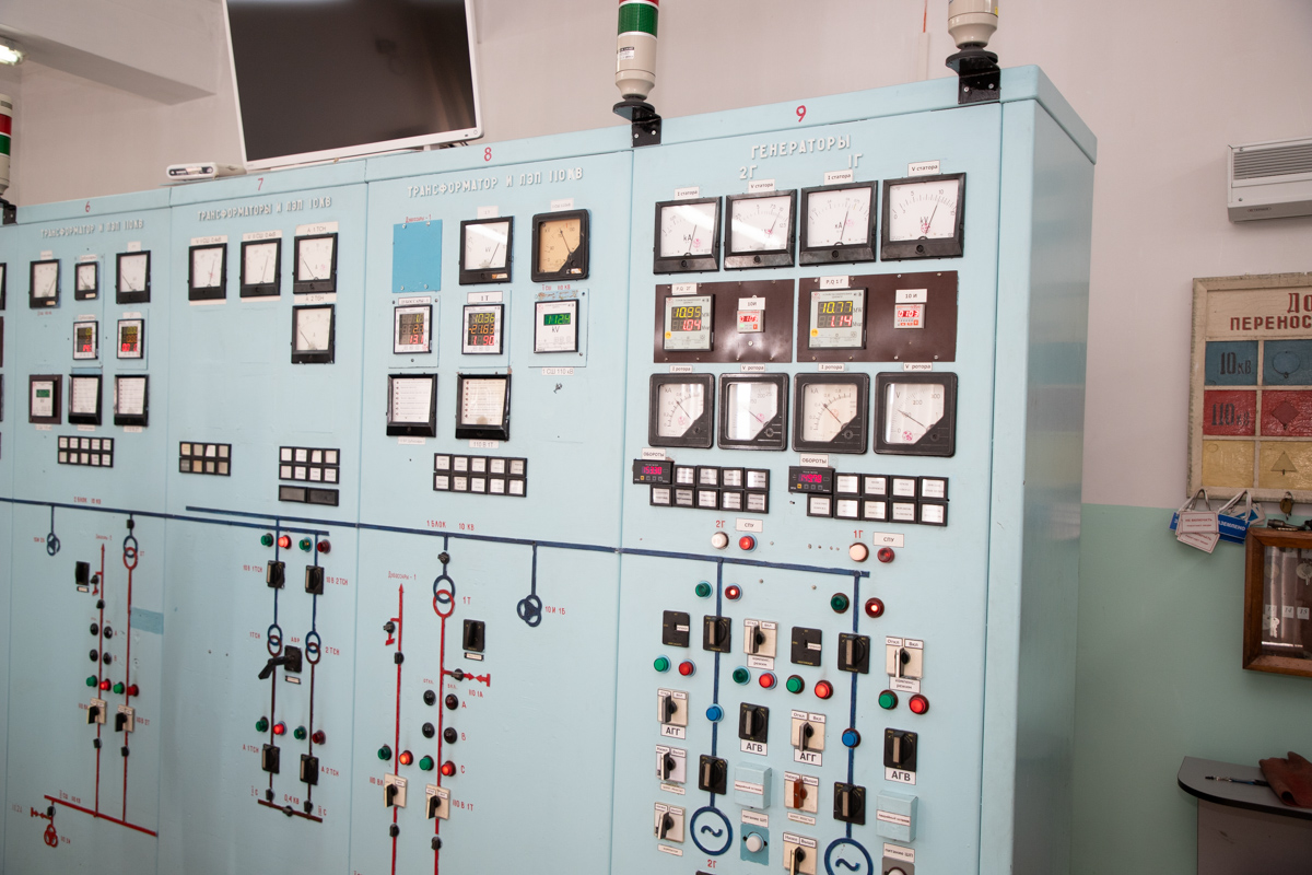 Именно отсюда управляют практически всем оборудованием на станции. Здесь можно включить генератор и отключить его. Для этого требуется около одной минуты. Также из центра управления следят за частотой выработки и потребления электроэнергии. Норма – 50 герц. Благодаря проведённой модернизации оборудования управление осуществляется как с щитов, так и с компьютера.
