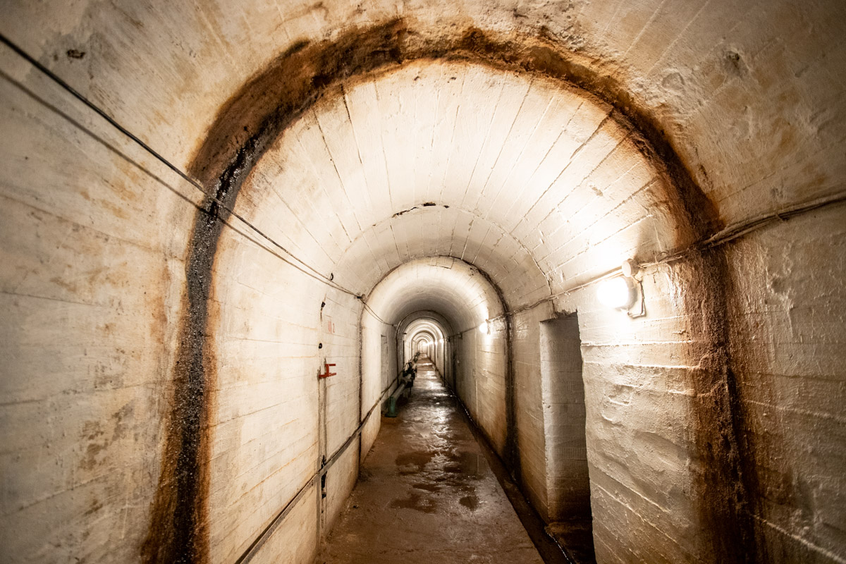 Следующим объектом экскурсии является смотровая галерея, которая находится в самом теле плотины. По отношению к верхнему бьефу она расположена на 18 метрах в глубину на уровне с нижним бьефом. Данное помещение необходимо для контроля протечек через тело плотины. Вся вода, которая протекает, попадает в помещение на уровень ниже, где насосы откачивают её в нижний бьеф. Ширина бетонных стен в туннеле составляет 3 метра.