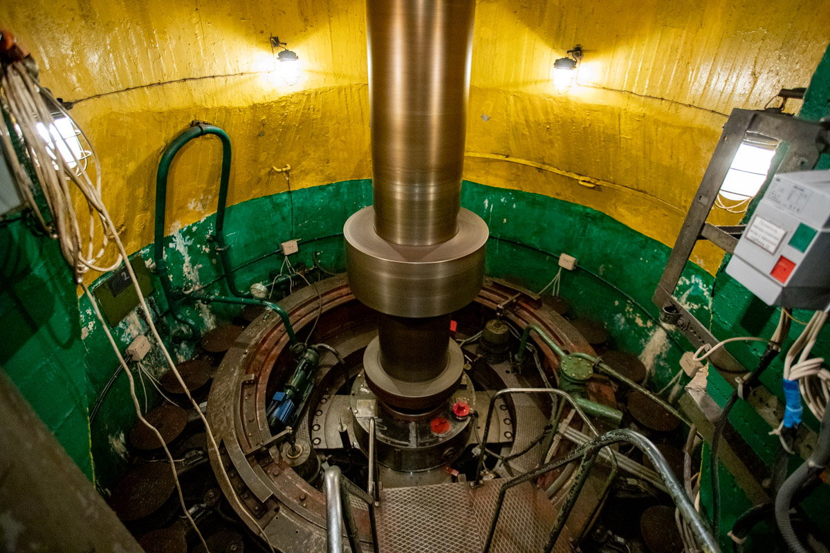 В машинном зале станции располагаются генераторы, которые управляют лопастями и направляющим аппаратом турбины. Как отметил старший дежурный станции, для управления одной турбиной необходимо давление масла 20 атмосфер, создающееся в маслонапорной установке.