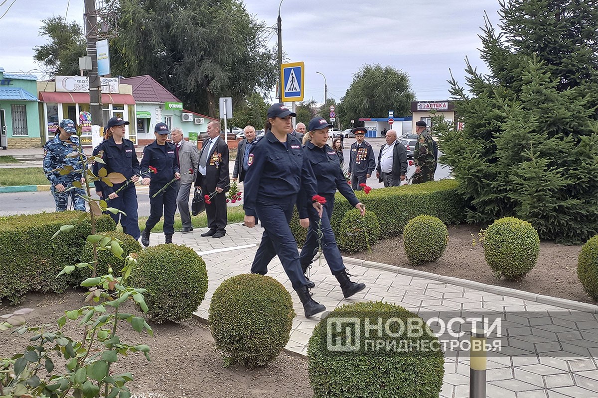 Присутствующие возложили цветы к памятному знаку у здания РОВД, установленному в честь погибших сотрудников, и к гранитной плите – на месте смертельного ранения первого начальника Дубоссарского РОВД Игоря Сипченко.