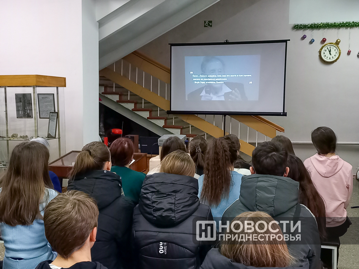О трагических событиях Великой Отечественной войны юным дубоссарцам рассказали и.о. директора музея Надежда Буймистр и председатель еврейской общины города Дубоссары Озиас Укштейн. Ребятам также показали документальный фильм об освобождении концлагеря «Освенцим».