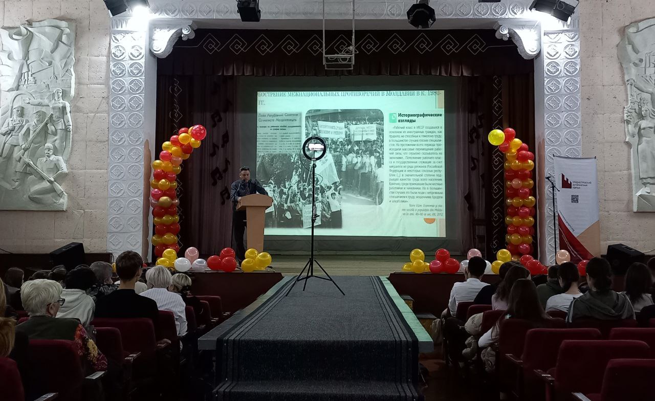В рамках Года приднестровского народа школьникам рассказали о формировании приднестровской идентичности, о том, как складывался наш народ, какие исторические события повлияли на становление республики. С лекцией «Приднестровский народ: от симбиоза народов к политической нации» перед школьниками выступил кандидат исторических наук, доцент кафедры истории факультета государственного управления и социально-гуманитарных наук ПГУ Вячеслав Содоль.