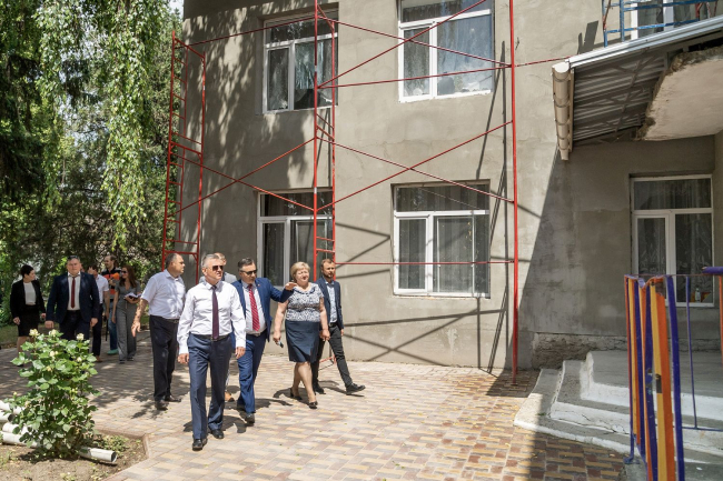 Президент побывал в центре развития ребёнка «Ивушка», который с 1 сентября возобновит приём воспитанников. Сейчас здесь в разгаре ремонтно-строительные работы: приводят в порядок здание, которое построили в 1978 году. Вадиму Красносельскому рассказали, что центр развития посещают около двухсот воспитанников. Важная особенность дошкольного учреждения – наличие как русских, так и молдавских групп.