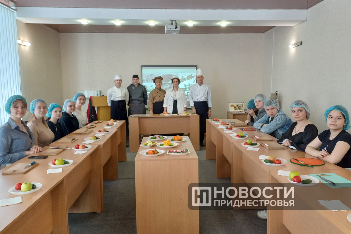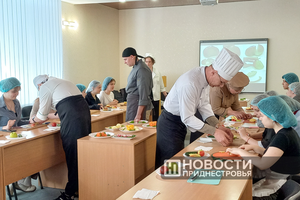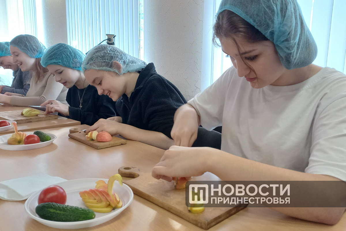 В поварское искусство погрузились учащиеся Дубоссарской гимназии № 1. Под руководством наставников-профессионалов они делали украшения из фруктов и овощей.