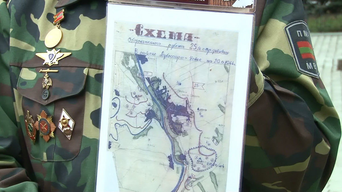 Внук решил сохранить боевой путь своих родственников. Провел исследовательскую работу, обращаясь в Центральный архив Министерства обороны Российской Федерации. Сегодня на митинге в его руках был портрет деда-освободителя Дубоссар и схема оборонительного рубежа 25-й гвардейской стрелковой дивизии в Дубоссарском районе.