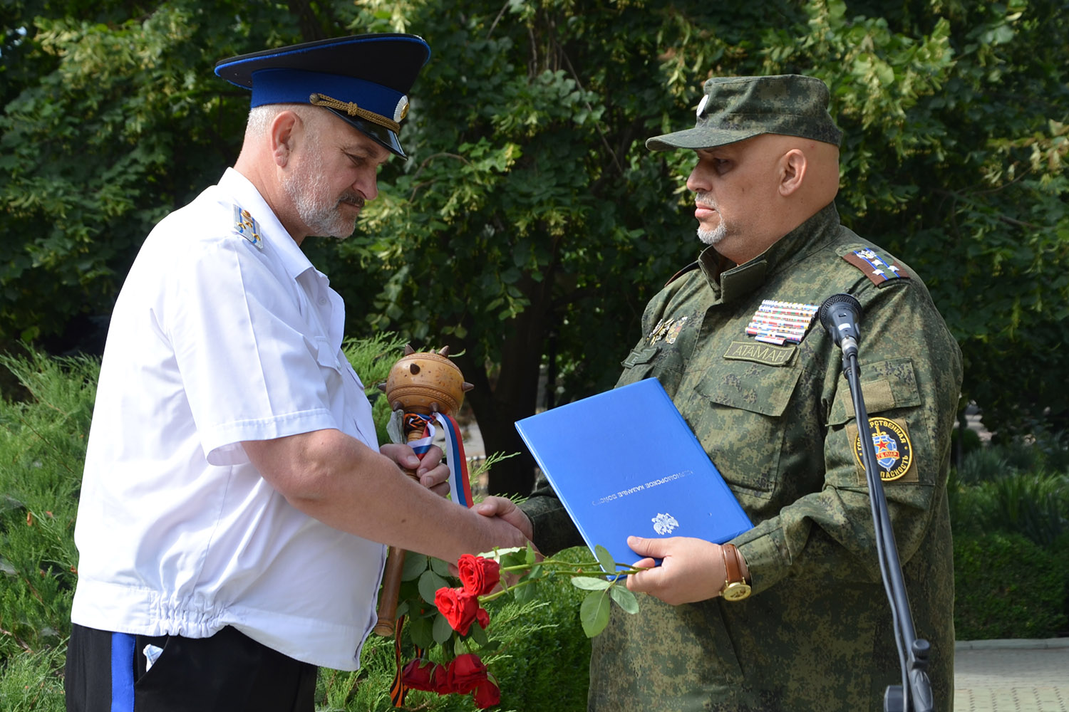 Окружной атаман рыбницкого казачьего округа Черноморского казачьего войска войсковой старшина Сергей Чуприков передал эстафету атаману дубоссарского казачьего округа старшине Олегу Белинскому.
